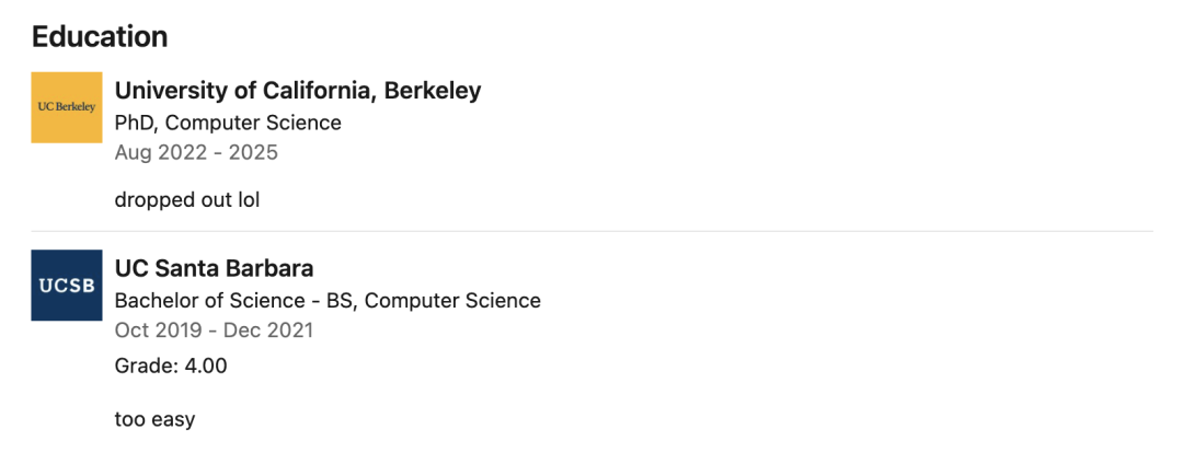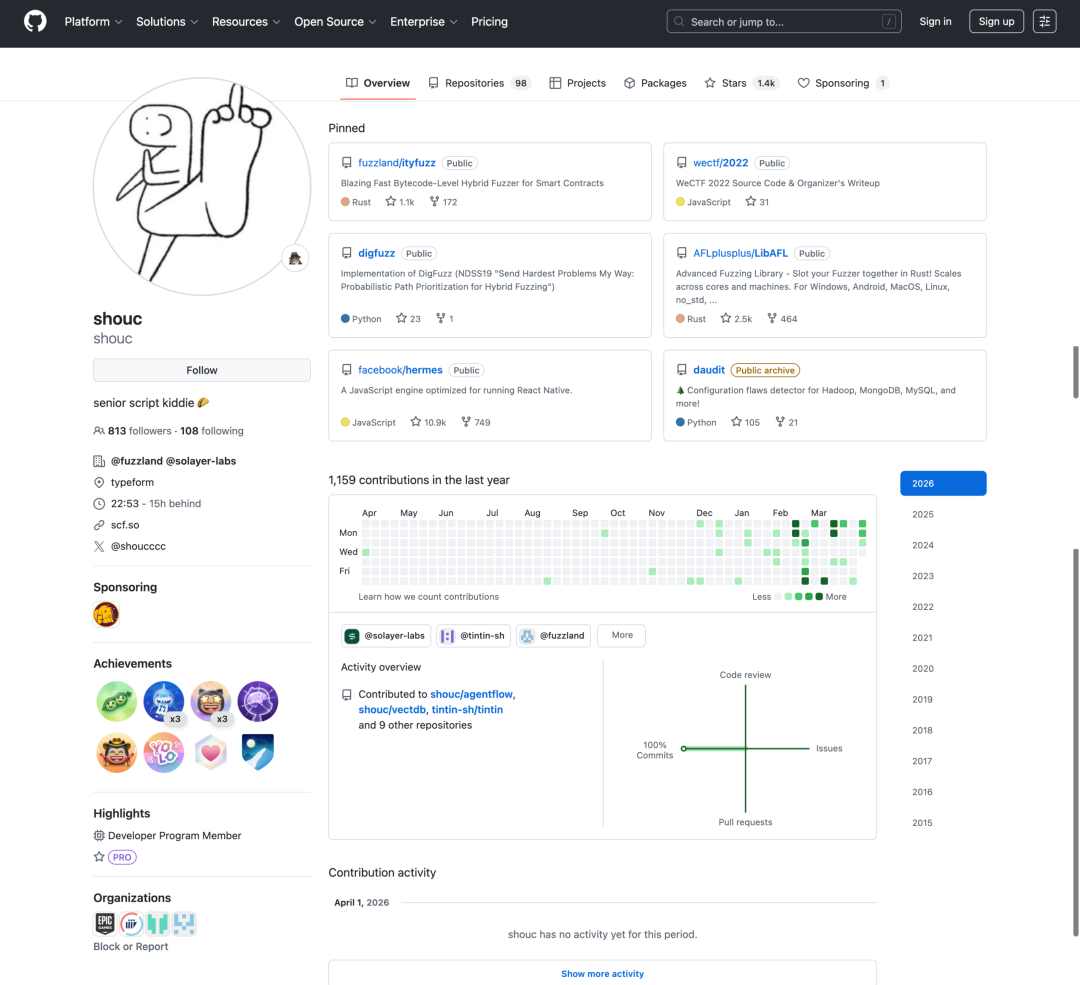 Anthropic 官方随后回应,此次事件属于「打包环节的人为失误」,并非安全入侵,没有任何用户数据或凭证遭到泄露。Claude Code 之父 Boris Cherny 也在 X 上简短留言,确认这只是「开发者的操作失误」。消息发酵后,马斯克也来凑了个热闹,转发网友调侃 Anthropic 现在比 OpenAI 更开放的帖子,并留下一句「太绝了😂」。值得一提的是,发现这次泄露的 Chaofan Shou,是一位履历相当亮眼的华人安全研究员,GitHub 用户名为 shouc,X 账号为 @shoucccc。据其 LinkedIn 资料,2019 年他进入加州大学圣塔芭拉分校攻读计算机科学本科,仅用约 2 年时间便完成全部学业,以满绩点 4.0 提前毕业。学历一栏的备注只有两个字:「too easy」。有网友算了一笔账,这相当于每学期都维持高考冲刺强度,连续三年每门课都拿最高分。本科毕业后,他进入加州大学伯克利分校攻读计算机科学博士,师从程序分析领域知名教授 Koushik Sen,后来选择退学创业。LinkedIn 上的备注同样简洁:「dropped out lol(退学了,哈哈)」。他早年在 Salesforce 担任安全工程师,负责静态代码分析工具和数据管道的开发,之后加入 Veridise 主导智能合约自动化测试工具的研发。2023 年,他联合创办了 Web3 安全与高频交易公司 Fuzzland 并担任 CTO,该公司后被 Solayer 收购,他随之出任 Solayer 全职软件工程师,职位描述一栏写的是「full-time larping on twitter(全职在推特上演戏)」。简单来说,他是在调侃自己成天在 Twitter 上发帖刷存在感,自嘲自己不干正事。Fuzzland 协助追回了超过 3000 万美元的被盗链上资产,目前保护和管理的资产规模超过 50 亿美元。他在 GitHub 上的代表项目 ityfuzz 是一个面向智能合约的快照模糊测试工具,累计已获超过 1100 个 Star。学术层面,他的 Google Scholar 页面显示总引用量达 224 次,h-index 为 6,i10-index 为 4,论文发表于 CCS、ISSTA、CoNext 等顶级学术会议,研究方向涵盖智能合约模糊测试、Web 安全与分布式系统。漏洞赏金领域,他从 2016 年便已活跃其中。披露过的漏洞覆盖 Twitter、Etherscan、Devin.ai、Google Nest 等知名平台,涉及账户劫持、系统接管、用户行为泄露等多类高危问题,累计获得漏洞赏金约 190 万美元。过去一年,他在 GitHub 上仍保持着 1159 次提交的活跃节奏。此人的身份在社交媒体上引发广泛讨论后,有网友在评论区留言:「是寿超璠嘛,这是我高中学弟阿。」公开资料也似乎印证了这一线索:他曾就读上海平和双语学校,曾入选中国计算机学会(CCF)高校宣传员名单。网络上,甚至流传着他手绘辅助图解 AMC10 题目的教学材料。当然,也不排除存在同名同姓的可能。有趣的是,Anthropic 把自己包装成最在乎安全的 AI 公司,而拆穿这层包装的人,是一个在 GitHub 上自称「senior script kiddie」的华人程序员。「script kiddie」在黑客文化里是专门用来嘲笑技术门外汉的词,指那些不懂原理、只会照搬工具的人,将这段话贴在自己主页最显眼的位置,本意无疑只是调侃。但正是这样一个人或许是职业习惯使然,在一次随手的技术检查中,让 Anthropic 的五十万行源代码出现在了所有人面前。