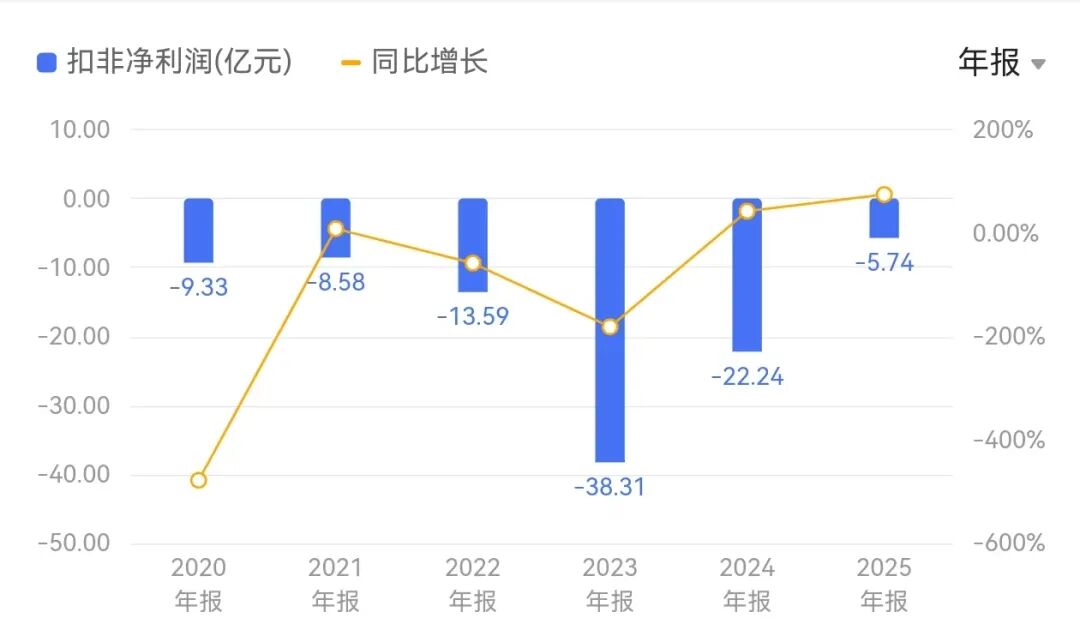 扣非净利再次亏损:连续6年合计亏损超66亿元