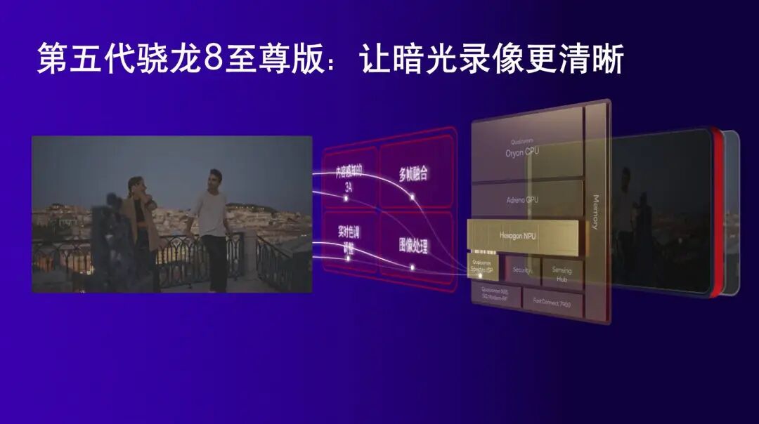 1975 年的冬天,柯达应用电子研究中心的工程师 Steven Sasson,在实验室里拼凑出了一台古怪机器。它重达 8 磅、仅 1 万像素,按下快门后,需听着沉闷的机器运转声等待漫长的 23 秒,才能将一张黑白照片写入到飞利浦卡式磁带里。面对极低的像素和数据存储速度,Steven Sasson 认为这玩意还需要 15 到 20 年才能真正和胶卷竞争。之后二十年,影像行业沧海桑田。影像载体加速数字化,并在二十一世纪的头一个十年,终于如 Steven Sasson 所愿终结了胶卷时代。但那时,相机依旧属于「家庭重资产」,人类还没法随心所欲地拍照,更遑论视频创作。刚刚发布的 vivo X300 Ultra,搭载第五代骁龙 8 至尊版,抛出了一个令人侧目的规格:全焦段 4K 120 帧 10-bit Log 视频。此时回头看去,才发现人类用五十年的时间,建造了一条数字大运河,并让每个人都能行船其上。这条运河里奔涌的河水,本质上就是海量的「密集影像信号」。这个听起来颇为学术、有些距离的词,实际与每个举起手机按快门的人息息相关——回想一下早年的智能手机,你一定对这样的画面不陌生:高光死白、暗部死黑、色彩断层、帧数不高,还伴随着挥之不去的噪点。iPhone 4s 拍摄的夜景画面,图片来自@PhoneArena视觉上的灾难,本质上都是因为底层图像信号处理器(也就是我们更熟悉的 ISP)「咽不下」庞大的信号。那时的手机只有 8-bit 的量化精度。一旦环境光比超过传感器的承载极限,高光区域的电平就会发生不可逆溢出,变成一片死白;而信号的暗部,则会被 ISP 粗暴地抹平成一团带有噪点的死黑。并且物理级的信息丢失,任何后期软件都无力回天。厂商曾试图用增大传感器面积换取更大的动态范围解决这个问题。但时至今日,在极度受限的机身内部,单纯堆叠物理尺寸的路径已逼近极限,后端 ISP 变得愈发重要。手机内部空间已经被影像模组与电池瓜分,图片来自@Notebookcheck过去很长一段时间,受限于物理规格,手机的算力中枢停留在 14-bit 双 ISP 阶段,随着传感器捕捉的信息愈发庞大,ISP 的数据管道必须随之拓宽。从 2020 年骁龙 888 引入 14-bit 三 ISP 以应对并发数据,到后来 Spectra ISP 迭代至 18-bit,移动平台将影像数据的处理带宽扩容了 4096 倍。如今,为了承载更密集的影像信号,vivo X300 Ultra 搭载的第五代骁龙 8 至尊版 Qualcomm Spectra ISP 顺理成章地迈入了 20-bit AI 三 ISP 时代。别小看这区区 2-bit。在数字底层,这个单位的任何变化都呈指数级海啸:单通道色彩的量化层级从 26 万平稳过渡到了 104 万级,为底层数据提供了 4 倍的动态范围余量。依托这层宽裕的物理基底,vivo 与高通在底层影像管线上,完成了深度的联合调优。结果也很生猛:X300 Ultra 实现了全焦段 14EV 的动态范围覆盖。这股庞大的数据余量,被悉数灌注进了两个极其考验底层的专业规格中——Log 格式,与杜比视界。在 Log 模式下,20-bit AI 三 ISP 负责将传感器捕捉到的线性信号,实时映射为对数曲线。由于底层采样精度的提升,手机保留了更丰富的原始信息,从而在后期调色时能有效抑制色阶断层,扩展了后期处理的边界;而在杜比视界标准下,算力则体现为对动态元数据(Dynamic Metadata)的封装精度。它能够更准确地对准每一帧的亮度与对比度信息,使高光与暗部的 HDR 层次得到如实呈现。落实到实际体验上,效果也很明显——我们带着 X300 Ultra 去拍摄了一场「热带极光」,凭借 Log 格式极其优秀的动态范围与宽容度,我们在夜半时分记录到离岛的渔船照亮了天际。经过后期还原后,渐变的天空过渡自然柔和,没有出现色彩断层,噪点抑制表现堪称优秀。至此,原本属于影视工业的宽容度规格被集成进移动芯片,在底层凿出一条数字运河的航道。普通人也就能随时随地、以手机拍摄出更高规格且具备后期空间的视频,进而有了更多的创作可能。解决了单颗镜头的明暗宽容度,只是完成了静态画面的重构。但视频的核心在于叙事的连贯性,这就引出了移动影像长久以来的另一个痛点:变焦卡顿。在拍摄视频时,我们常需要推拉镜头来切换视角。但滑动变焦环时,画面往往会伴随一阵不易察觉的跳动,色彩和白平衡也会发生突兀的偏转。症结在于手机内部的镜头各自为战。它们素质各异且受控于独立时钟,传统 ISP 的「冷启动」策略只能在变焦瞬间仓促切换。时间戳一旦错位,画面的跳帧与色彩断层便注定发生。要在移动设备上实现顺滑的变焦推拉,就必须在底层强行打通这些相互独立的硬件。在 vivo X300 Ultra 实现全焦段高规格视频录制的背后,第五代骁龙 8 至尊版用两套相互咬合的底层机制将硬件扣合起来——20-bit AI 三 ISP 撑起庞大数据吞吐,让三颗镜头得以在后台保持热并发状态。即使当前只用主摄录制,超广角和长焦的 ISP 通道也已经在后台同步运行着 3A(自动对焦、自动曝光、自动白平衡)算法,为随时上场热好身。与此同时,第五代骁龙 8 至尊版的高通多摄同步系统(MSCC),扎进最底层的硬件总线,给这些原本各自为战的镜头,强制下发了一个统一的「全局时钟」。无论它们的物理位置有多远,传感器素质有多大差异,底层的死命令只有一个:两套机制并发运行,以此换取 vivo X300 Ultra 跨镜头推拉时,不同传感器之间的数据交接平稳过渡,从而缓解了跳帧与白平衡漂移的痼疾。专业影像领域如河流般暗流涌动,如果没有坚固巨舰为依托、严密的团队做协同,不得逐浪其中。如今,底层芯片的