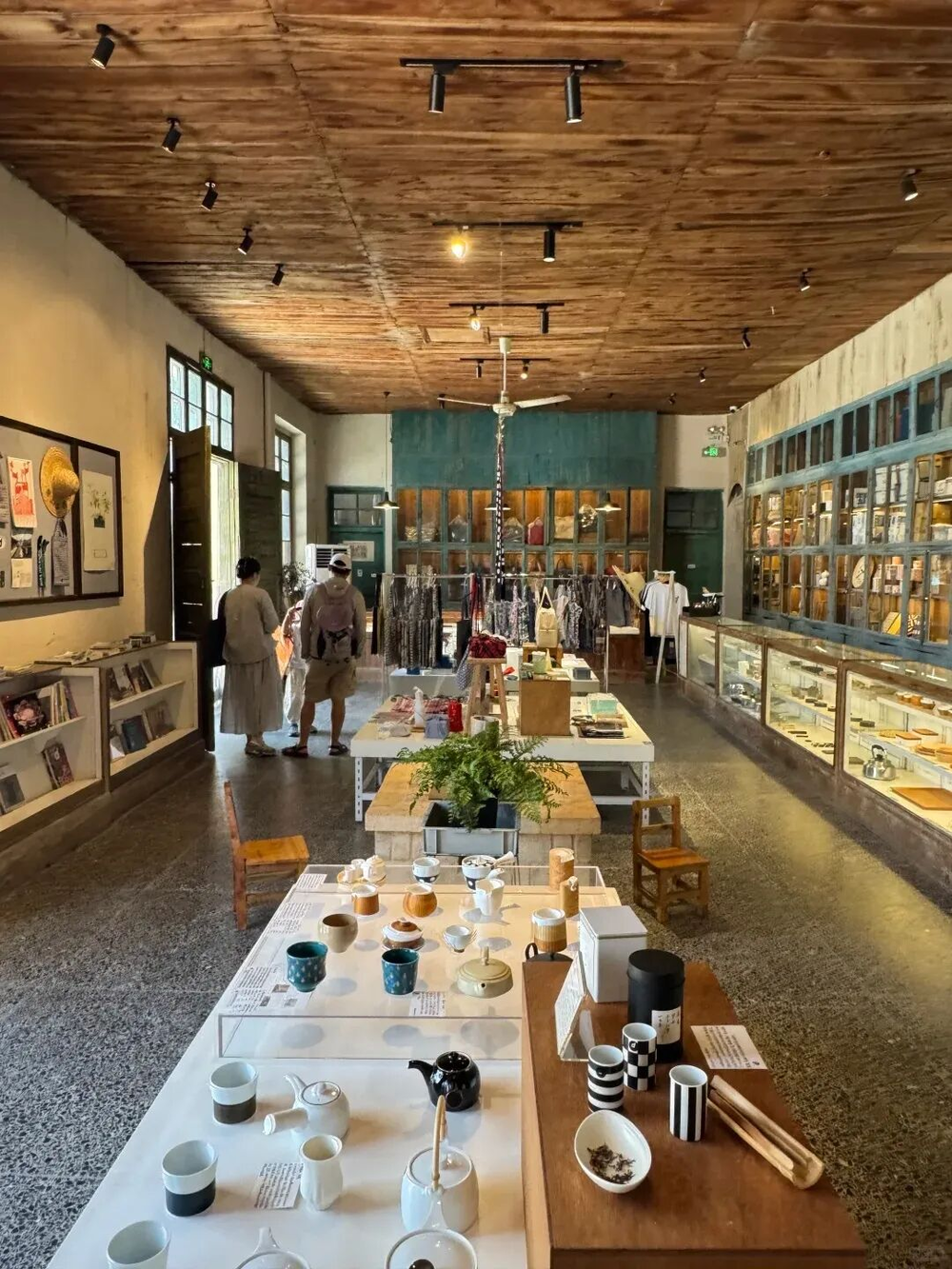 而国内安徽黄山的店,老货架、玻璃柜台,里面码着粗陶茶碗、竹编食盒、手染蓝布,没有都市店的精致,但那种“山里人家”的踏实劲儿,让人一进去就不想出来。