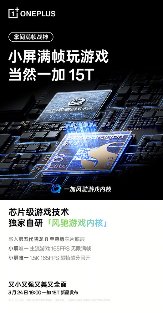 一加15T将配备顶级的游戏技术:搭载全新电竞三芯 小屏满帧玩游戏