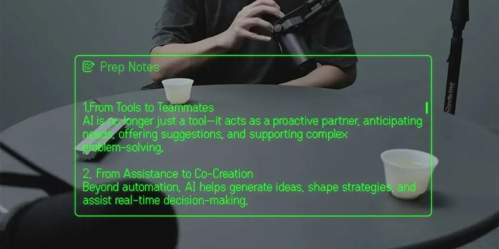 Even Realities还宣布了一项名为“Prep Notes”的新功能,该功能是对“Conversate”功能的扩展。该工具允许用户在会议或对话前与眼镜进行一对一的交流,以便在需要提前思考的谈话前先梳理思路。
