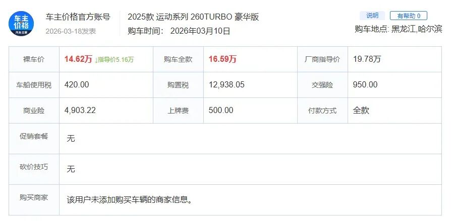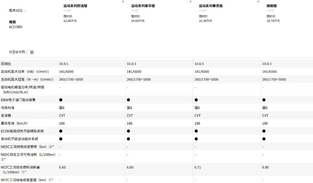 都知道这两年本田在国内过的不好,但没想到这么不好。最近几期,咱们一直在介绍日系的B级车,主播就好奇查了查小时候最受欢迎的雅阁现在是啥情况。一查吓一跳,雅阁已经连续两个月销量腰斩,去年12月还能有18960的月销量,今年一月直接降到13825,2月更是下滑幅度夸张,就只有4630辆。那咱们这期就来看看,2025款广汽本田雅阁现在车怎么样?还值不值得买?咱们先看卖得最好的燃油版,以2025款运动系列 锐·T动 260TURBO 豪华版为例,官方指导价19.78万,目前哈尔滨给到的优惠5.5万左右,裸车价只要14.28万。再加上车船使用费、交强险、上牌费、购置税以及5000左右的商业险,落地大概在16.3万上下。这还没完,在这个4S店报价的基础上,还有不少车主又谈了4000-6000的优惠,实际落地在15.5万上下很轻松。e:PHEV插混版卖的不咋地,所以降的确实狠。广汽本田为了庆祝雅阁诞生50周年,搞了个“十万回馈活动”,老客户复购e:PHEV版直降10万,优惠后裸车仅需13.88万。虽然有限量1000台和老客户复购的条件,但就结合插混版销量来看,1000台估计得买一阵儿,其余条件也比较好操作,懂得都懂。对比其他日系B级车来看,雅阁的价格还是有竞争力的,但国产车型冲击太大,再加上这代雅阁多年未调整和换代,产品力不足,导致销量快速下滑。并且就目前形式分析来看,雅阁很难再降价了,因为目前的优惠已经接近成本线,再降本田就受不了了,并且还得和思域、型格等车型拉开差距,近期也没有停产换代的消息,所以短时间内很难再降,想买可以趁现在。动力系统省油耐用,买本田本质还是在买发动机。燃油版全系搭载1.5T发动机,匹配CVT变速箱,动力输出平顺无顿挫,日常代步、高速超车完全够用,加92号油就行,燃油成本很低,开几年也基本不会出大毛病,CVT还是钢链的,强度高不用担心坏。e:PHEV搭载i-MMD混动系统,和比亚迪DM原理类似,日常通勤用电,长途用油,没有续航焦虑。空间够大。轴距2830mm,比旧款略长,后排腿部和头部空间宽敞,也是雅阁能火这么多年的核心原因之一,比同级的凯美瑞后排空间更舒展,也比德系车型更适合家用。操控灵活,开起来不笨重。操控也是本田的看家本领之一,作为日系车型中少见的以操控见长的品牌,低重心设计,过弯时支撑性到位,方向盘虚位小,指向精准,低速挪车、高速过弯很顺手;加上本来就轻的车身,日常开起来也更加灵活。配置够用,日系这一波换款和换代,针对配置都进行了不小的调整,都摘掉了此前扣扣嗖嗖的标签,车内智能化配置基本上都标配;中高配车型还有Honda SENSING 360+智能驾驶辅助系统,能实现高速领航辅助、超车辅助、开门碰撞预警等,主动安全方面有所提升,算是日系B级车型中配置比较能打的了。优点聊完了,想买这个车,还得看看缺点,雅阁的缺点也很集中,尤其是降价之后,一些隐藏的坑也暴露出来了。品控下滑不少。降价这两年本田的品控真的大不如前,从各个论坛和网站上反馈的消息来看,2025款雅阁的小毛病层出不穷:车漆太薄,轻轻一划就是一道口子,也是日系车的通病;内饰塑料味、皮革味太重,新车开半年都散不完;中控异响、车门异响是家常便饭,尤其是走烂路的时候,异响更明显;还有车主反馈,车机偶尔卡顿、黑屏,语音交互不灵敏。外观设计不讨喜,内饰质感也一般。外观方面,这代车型自改款后争议就不小,主要吐槽的点在于没有此前的精气神了,不是很讨喜;内饰则采用了思域和型格类似的设计,用料方面也没有好多少,基本都是塑料;最后就是设计也显得比较陈旧,缺少了一些精致感。隔音效果差,胎噪风噪感人,雅阁的老毛病,一直没改进,车内说话,车外轻松听清,开起来胎噪和风噪都很大,舒适性方面差点意思。这里必须要着重说一下e:PHEV版,可以说问题不少。纯电续航只有82公里,新能源购置税减免的及格线都没到;不支持快充,只能慢充,充满电需要3-4个小时,就别想当电车用;稳定性还一般,此前广汽本田召回了16329辆雅阁e:PHEV版,原因是动力控制系统软件设定有问题,极端情况下可能导致车辆失去驱动力;最后就是这个电池的放置的位置也很奇怪,放在了后备箱,形成了一个单独的“座”,“唯一绿牌六座轿车”可不是浪得虚名。经销商的问题也不少,现在本田卖的差,4S店也开始跑路,最现实的问题就是给了定金交不了车和买了保养套餐不能兑现的问题,都是比较闹心的问题,需要关注一下当地的情况。最后咱们总结一下,再给大家一些具体的购车推荐,不管是燃油版还是e:PHEV版,看完再决定,别盲目入手。亮点很突出:省油耐用,本田祖传的1.5T发动机和i-MMD插混系统,日常养车成本低;空间宽敞,家用商务两不误,后排空间舒展;操控灵活,开起来不笨重,新手也能轻松驾驭;配置有诚意,基础配置扎实,中高配还有主动安全系统和简单功能的智能驾驶辅助。槽点也不少:品控缩水,小毛病多;内饰廉价,大面积硬塑料,质感拉胯;隔音效果差,胎噪风噪感人,舒适性大打折扣;e:PHEV版纯电续航短、不支持快充,实用性有限,还老召回,心里没底;售后没保障,容易被坑。买车前,雅阁的优点和缺点都要考虑到,看看自己能不能接受。最后问题来了,燃油版和e:PHEV版放一块看,哪一款值得买?