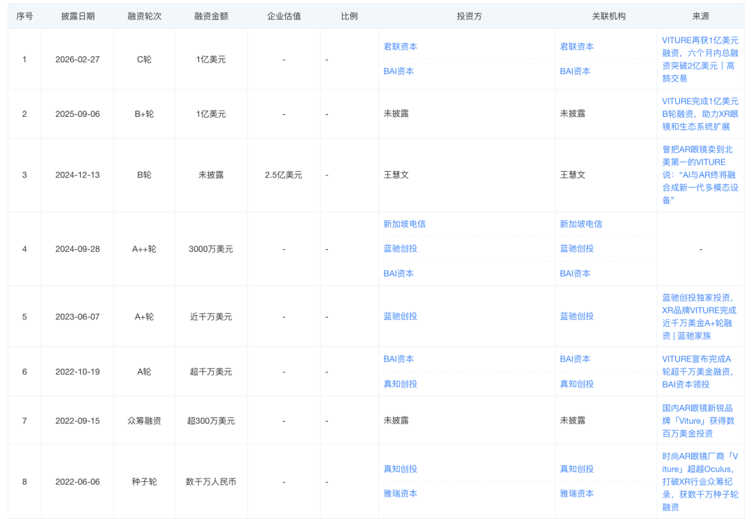VITURE也处于快速扩张的中后期融资阶段,其资本节奏同样呈现出向IPO过渡的趋势。自2025年9月至2026年2月,公司在6个月内累计融资超过2亿美元,背后包括君联资本与贝塔斯曼等机构支持。产品端,VITURE通过Luma系列与Beast XR切入“掌机游戏+沉浸观影”这一细分市场;渠道端,则加速进入北美线下零售体系(如Best Buy)。这类以细分市场为切口、快速扩大全球渠道的路径,通常也是企业在IPO前提升估值与市场认知的重要策略。