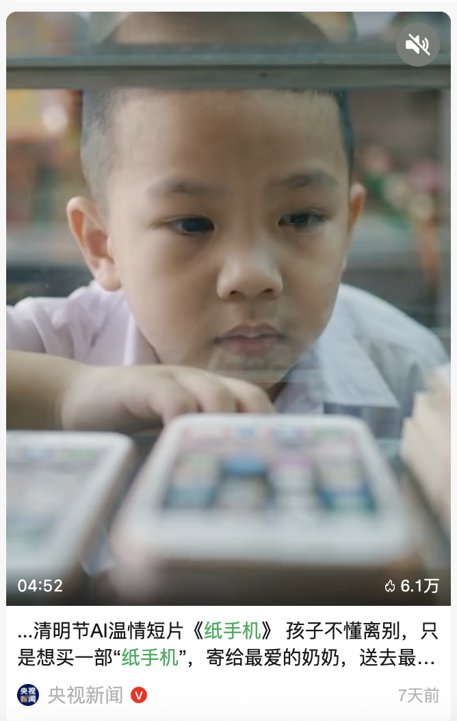 看这部短片时,你可能不会怀疑自己看到的是 AI 短片,直到看到这个画面:转圈的老式电话,拨号时手指怎么在这里呢?而且,片子的设定里,烧的纸器都已经是 iPhone 了怎么还会有这么老式的电话机?这是 AI 短片《纸手机》里最被讨论的一个画面。不是因为它有多好,是因为它全然暴露了这部短片是生成的,尽管前面几分钟,逼真得让人感受不出来。但评论区没有人在骂,弹幕飘过的是「看到这里才发现是 AI 做的」,紧接着是「完全不在意」,「AI 又怎么样,又不影响我哭」。从 AI 可以完整生成视频诞生以来,没有一个 AI 影像作品可以逃开这个问题:有多逼真?模型迭代的速度被当作技术进步的刻度,每一次发布都伴随着「这次终于分不出来了」的惊叹或「还是一眼假」的嘲讽。尤其是真人题材,仿佛只要足够逼真,观众就会买单。《纸手机》提供了一个反例。观众在明确知道这是 AI 生成的之后,仍然被打动,而且他们主动承认感动。那个电话 bug 不是被「原谅」了,它根本不在观众的评价维度里。他们在意的是另一件事:一个不懂死亡的小男孩,攒了 15 块钱,想给去世的奶奶烧一部手机。这部全网播放量上亿、被央视和人民日报转发的 AI 短片,由两个潮汕年轻人用三天做出来。导演李婷,98 年生,做了五年产品经理后转型;搭档杨选,90 后,广告导演出身,美术史背景。在可灵 AI 3.0 Omni 的帮助下,除了那部用纸壳板做的手机道具,画面中的一切:光线、人物、场景、表情……全部由模型生成。当一部没有一秒钟是物理真实的短片,触发了真实的情感反应,「真」这个字意味着什么?正逢清明,李婷和杨选都是潮汕人,烧纸钱、祭祖、给去世的亲人「寄东西」,是他们从小刻在身体里的习惯。杨选记得小时候跟家人上山,看到纸扎的煤气罐、房子、车子在火里卷曲变黑,「用纸做这些东西,恰恰体现了中国人情感的内敛和滞后,」他说。「纸手机」这个概念就从这些记忆里生发出来,但让它成为一个故事的,是一系列叙事设计上的选择。在故事的前段,面对只有 15 块钱的孩子,老板一开始画了个假手机打发他。直到得知,这个孩子已经是个孤儿,身边最后的亲人也去世了,他起身追出去。找到孩子后,老板没有直接说「我来帮你」,而是说那部纸手机「信号不好」,给了他一部新的。李婷说,这些笨拙的借口来自于她代入角色后的思考:「这个人在这个情境下,会怎么反应?」她想起自己小时候问长辈「什么是死亡」,对方愣了一下才回答。那个「愣了一下」的瞬间,被她放进了短片里,某个路人听到小男孩问话后的短暂停顿。还有老板追出去前,把店铺的卷帘门放下一半,这代表着「暂时外出,很快回来」,也是一个很生活化的细节。虽然是一部 AI 短片,但编剧环节是纯人工的,杨选在采访中反复强调:新手一定要自己写剧本,「来源于真实体验才能打动人」。剧本确定后,进入 AI 生成阶段。他们使用的可灵 3.0 Omni,主要依赖三个功能:多图参考(设定角色形象的一致性)、音画同出(同步生成画面与声音)、以及主体资产中的音色锁定(保证角色声音在全片中统一)。工作流从人物设计开始,先设计形象,放入模型让它自由发挥对白,从中挑选最合适的音色,再锁定。李婷说,这个过程中最容易被忽略的一步是「写提示词之前的思考」。「很多人觉得提示词要写得很长很复杂,但更重要的是精准度——你到底想要什么。」精准度这个词在他们的工作流中反复出现。杨选为了理解不同视觉风格的底层逻辑,曾做过一个实验:用同一个模型生成 10 种完全不同的电影质感——日系、贾樟柯式、现代感。「不是在提示词里写 “杨德昌风格”,」他说,「主要是分析那种风格为什么成立,日系的白柔效果从哪来?雪地这种材质怎么影响整个画面氛围?」《纸手机》的胶片质感就是这种方法论的产物。有趣的是,他们在提示词中从未写过「颗粒感」或「胶片」这样的词。杨选说,那种质感是潜移默化、自然而然的。「故事设定在那个年代,场景是午后暖光的纸器店、老式玻璃柜,这些东西放上去,质感自然就出来了。」他直言自己喜欢杨德昌、李安、侯孝贤那一代人的镜头语言和叙事方式,但并非刻意模仿,而是「你想这个故事的时候,自然会用那个时代的方式去想」。最后的车内长镜头是全片最被称道的段落。一分多钟,小男孩坐在车上,窗外风景掠过,没有台词,只有背景音乐。李婷说,提示词主要描述的是窗外景色、小男孩的情绪递进、车内的颠簸感,以此模拟真实的坐车状态。这个镜头一开始只有 30 秒。杨选看完后觉得可以再长,于是逐步延长。「亲人去世的时候,悲伤可能不是马上来的,」他说,「你可能周围的声音都没发现。耳鸣了一段时间,突然莫名的情绪一涌而上,像潮水一样。」这个设计,不是数据分析出来的,也不是 A/B 测试的结果,是他们作为创作者个人记忆和情感驱动做出的选择。两个人,三天,极限压缩可能不到三天。作为可灵平台的超级创作者,他们有算力支持,制作成本不高。但李婷特别强调了一句话:「AI 降低了制作成本之后,人的价值反而更凸显了。成本里面更应该包括导演和编剧的创意策划,这些无形的东西呈现出来的价值,才是重点。」采访中我问了一个带有假设性质的问题:如果这个故事用真人实拍,传递出来的情感会不同吗?杨选很坦率:「实拍要做出来的话,非常吃力。小朋友演员能不能给