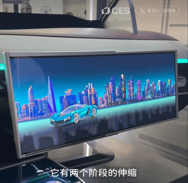 我更看好的是 LG 在今年 CES 上展示的「卷轴屏」车机屏幕:驾驶过程时,车机屏幕以小尺寸显示导航等基础信息;而驻车时,则能够扩展到 33 英寸的大屏形态,兼顾娱乐作用。