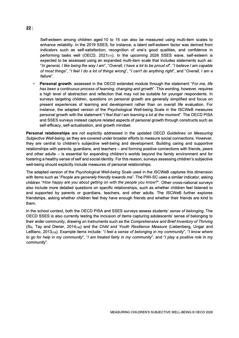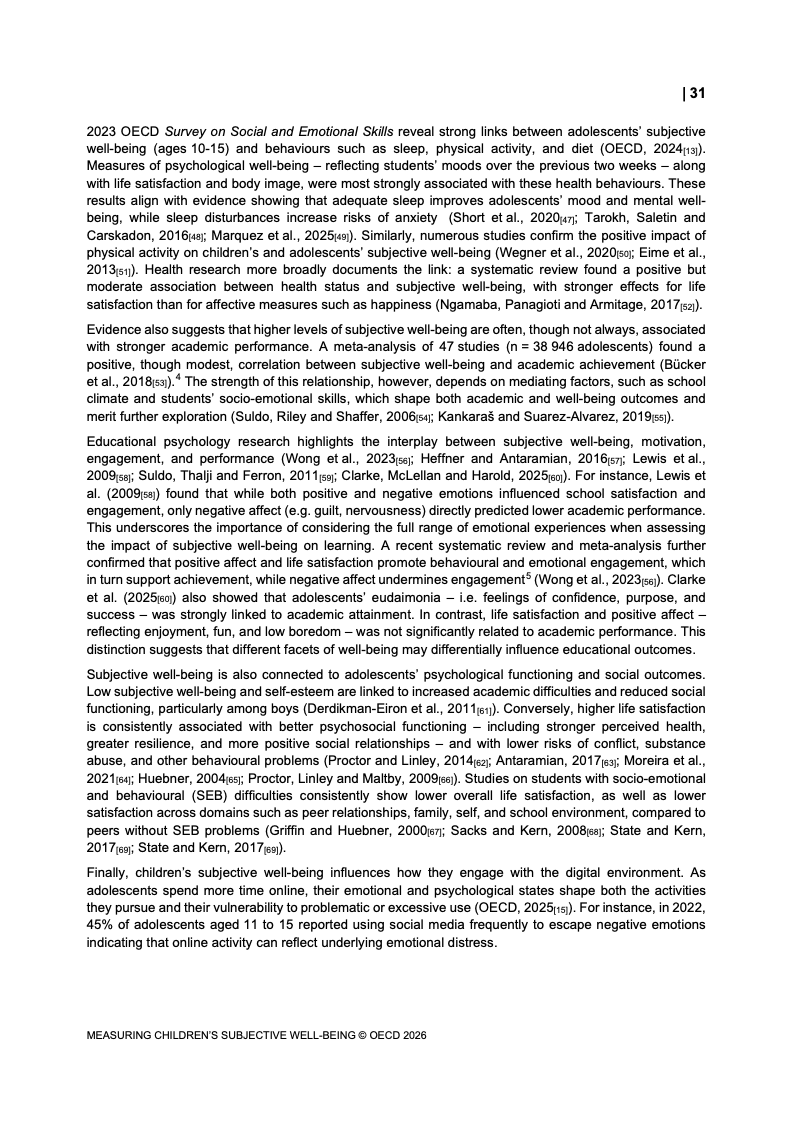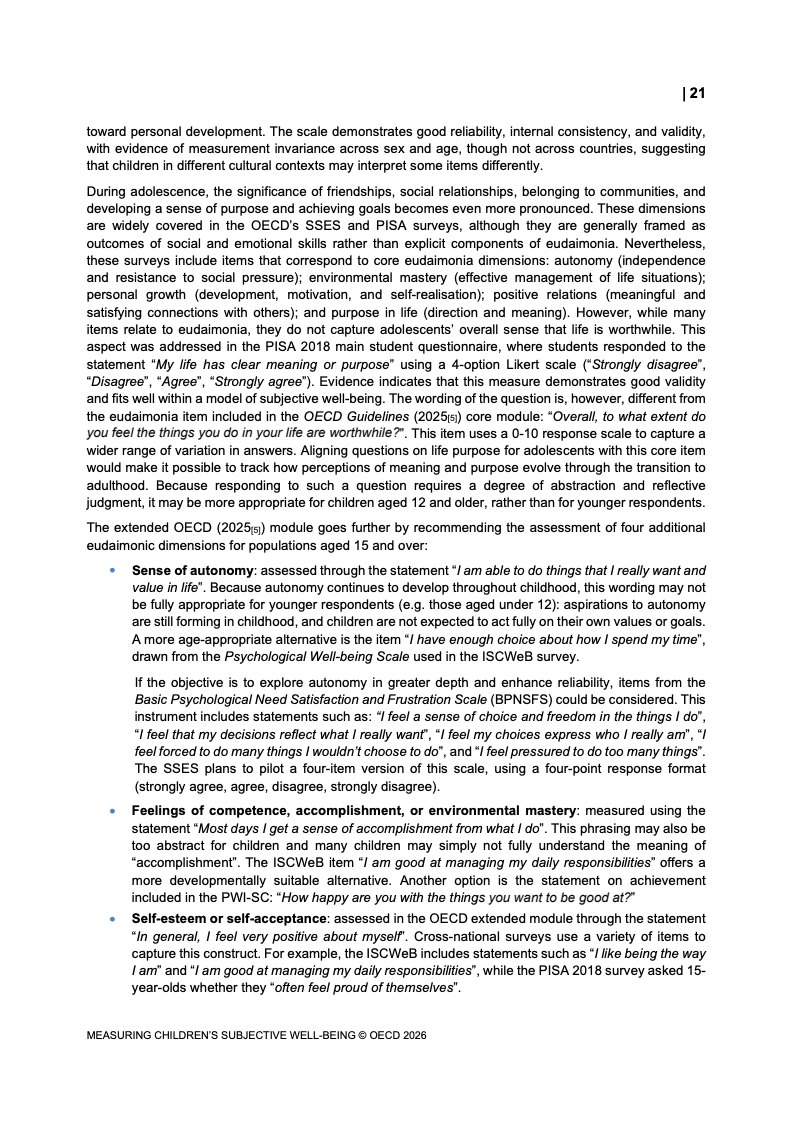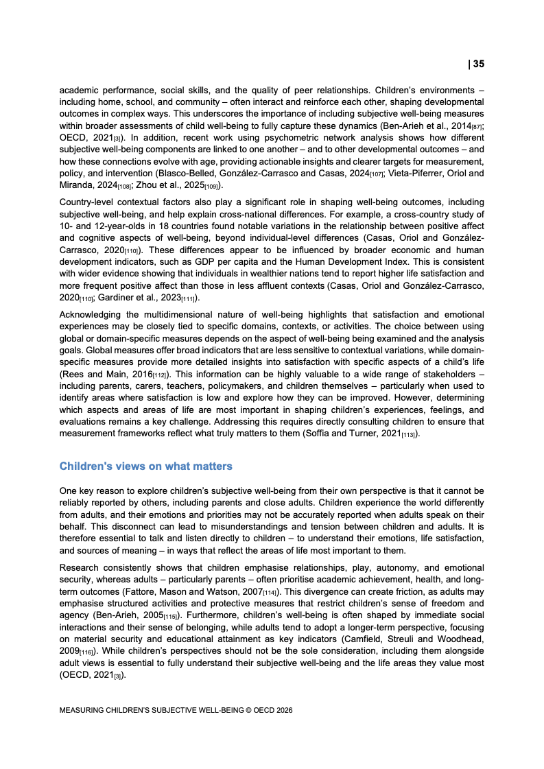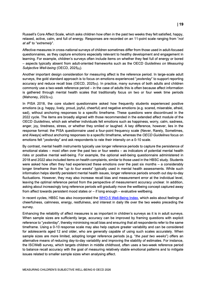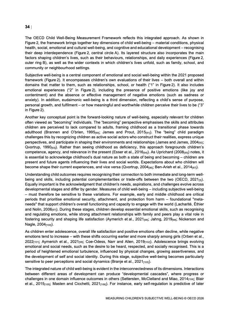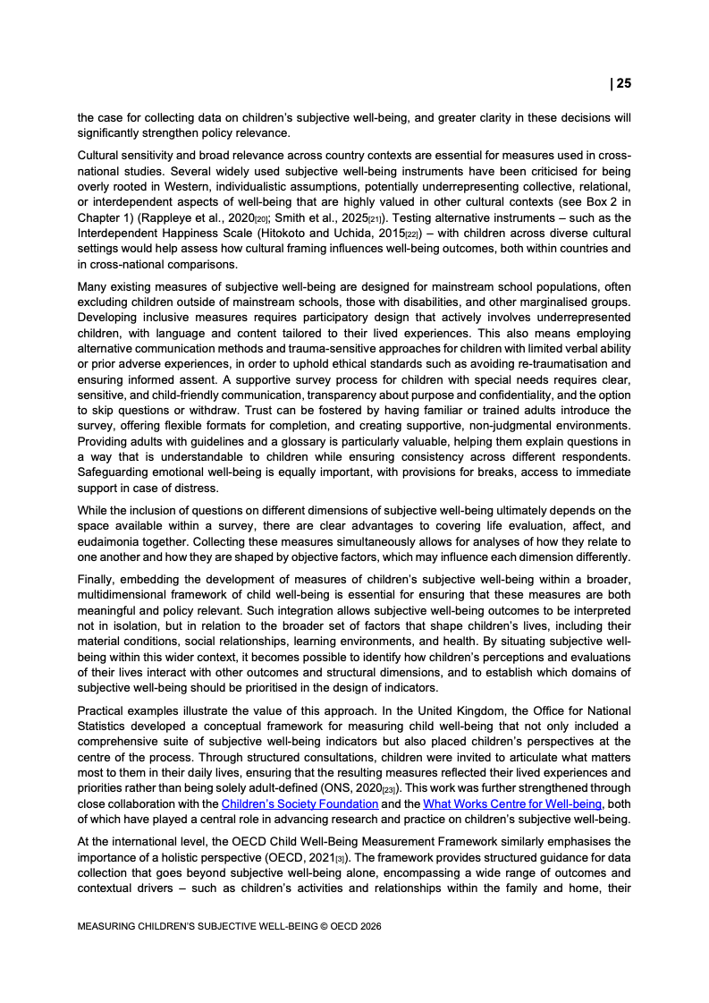 该报告围绕儿童主观幸福感的测量逻辑展开,核心在于将儿童自我感知纳入政策评估体系,以弥补传统以收入、教育和健康为主的客观指标不足。研究显示,近年来OECD多国青少年生活满意度出现下行趋势,这一现象不仅与教育压力、家庭结构变化及数字化环境扩张有关,也可能受到表达能力增强与社会比较加剧的影响。主观幸福感因此被视为理解儿童发展质量与社会变迁的重要前瞻性指标,其政策价值显著提升。