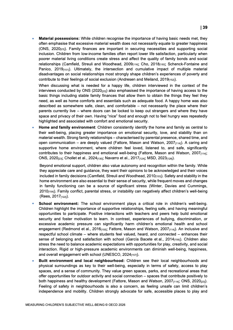 从影响机制看,儿童幸福感呈现出明显的多维驱动特征。家庭关系与情感支持是最核心变量,对幸福感具有基础性影响;学校体验与同伴关系在青春期阶段成为波动主因;与此同时,数字生活的快速渗透使其成为新的关键维度,一方面强化社交与信息获取能力,另一方面也带来网络风险与心理压力。此外,社区环境与自然空间对心理恢复与情绪稳定的积极作用正在获得更多实证支持。