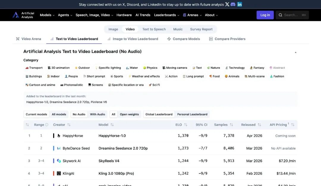 昨天,一个名为 HappyHorse-1.0 的匿名 AI 视频生成模型突然出现在权威 AI 评测平台 Artificial Analysis 的 Video Arena 榜单上,并以压倒性姿态登顶多个赛道。在文本转视频(无音频)赛道,HappyHorse-1.0 以 1332 的 Elo 积分位居第一,领先第二名 Dreamina Seedance 2.0 近 60 分;在图像转视频(无音频)赛道,其更跑出 1391 的高分,刷新了该榜单历史纪录;即便是对视听协同要求极高的有音频赛道,该模型也稳居全球第二,仅次于 Seedance 2.0。HappyHorse-1.0 的发布方式极为低调——没有产品发布会,没有技术博客,也没有任何企业背书。其官网 happyhorse.app 提供文本转视频与图像转视频两种模式,支持原生 1080p 输出,并强调多镜头叙事一致性与流畅动作合成,免费注册即可使用。网友 Vigo Zhao (@VigoCreativeAI) 在 X 上发文称,将 HappyHorse-1.0 的公开基准数据与已知模型逐项比对后,发现其与今年 3 月在 GitHub 开源的 daVinci-MagiHuman 高度吻合:视觉质量、文本对齐、物理一致性、语音字符错误率等多项数据几乎完全匹配,官网架构描述、性能表格及演示视频的呈现风格也如出一辙。daVinci-MagiHuman 于今年 3 月 23 日正式开源,由上海创新研究院(SII)生成式人工智能研究实验室(GAIR)与北京(沙砾科技)联合开发。阿里巴巴 AI 大重组:设技术委员会、建 ATH 事业群,电商向 Token 经济转型