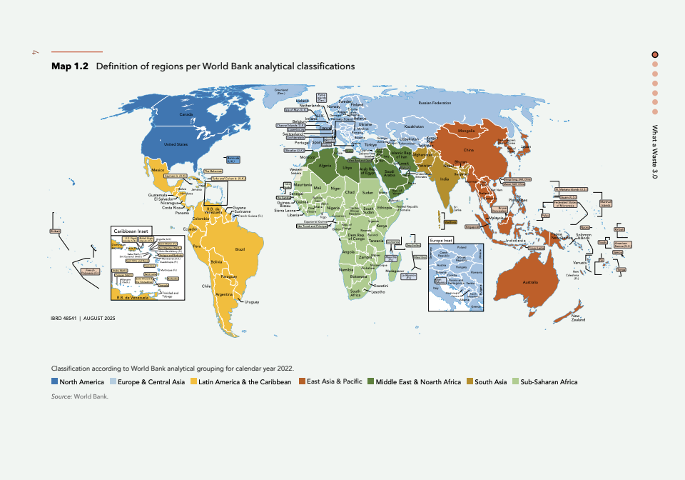 全球固体废弃物正以超预期速度增长,构成一项被长期低估的宏观挑战。报告显示,2022年全球垃圾总量已达25.6亿吨,提前逼近此前对2030年的预测水平,反映出消费扩张与城市化的叠加效应正在加速释放。 在基准情景下,至2050年该规模将升至38.6亿吨,累计增幅约50%。其中,撒哈拉以南非洲与南亚成为增长核心引擎,增幅分别达124%与99%,显示人口与经济双重扩张正在重塑全球废弃物地理分布。