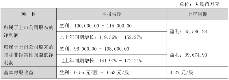 2026年第一季度,东山精密的业绩实现了爆发式增长。公司预计归属于上市公司股东的净利润为10亿元至11.5亿元,同比增长119.36%至152.27%。