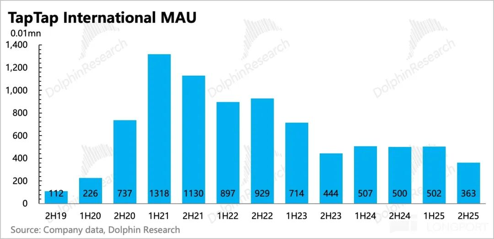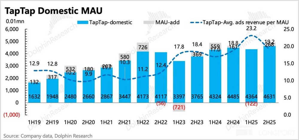 不过MAU下半年预计净增明显(年度MAU平均值倒算),可能主要源于去年7月TapTap小游戏的推出。今年看看能否在《心动小镇国际服》和《仙境RO守爱2》的新游带动下,用户规模可以持续扩张,以此来支撑TapTap的宣发价值潜力。