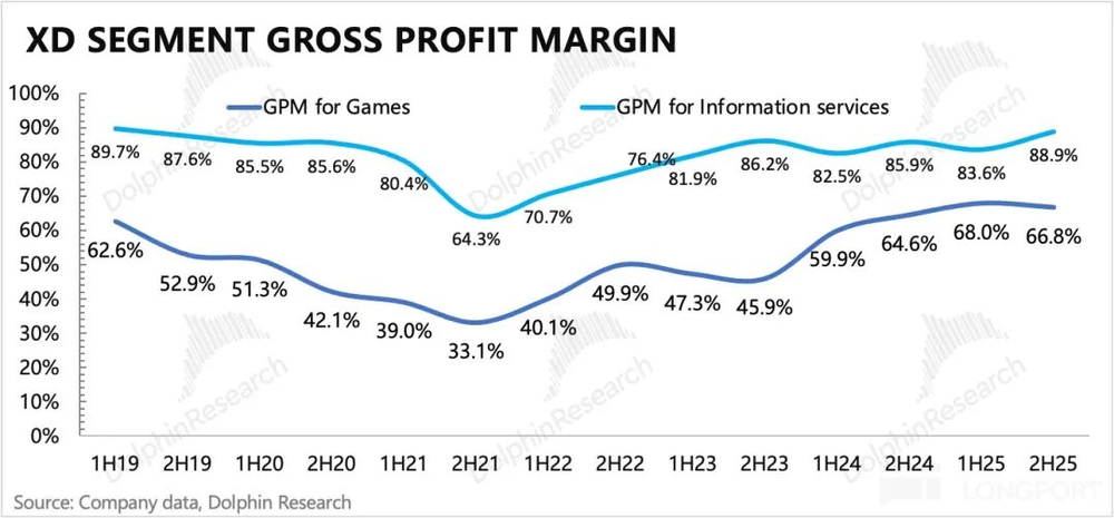 2.高基数下,游戏同比下滑:下半年游戏部分同比减少11%,主要受玩家数下滑影响。下半年的新游戏主要是伊瑟国服,原本市场预期也较高,实际情况是,虽然《伊瑟》开头炮还不错,但衰减太快,可能是同类竞争的影响,公司认为《伊瑟》运营情况目前已经属于成熟期。