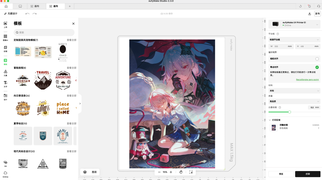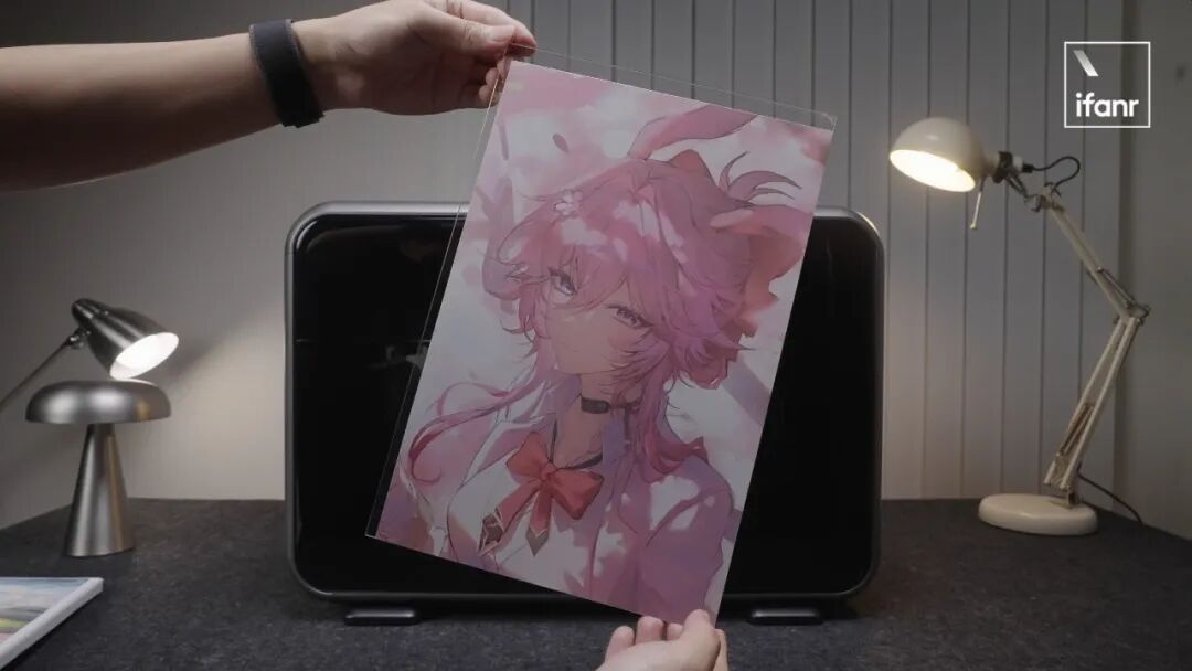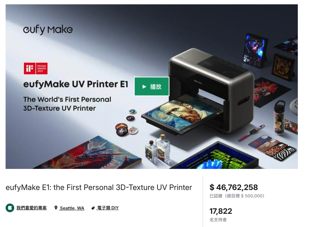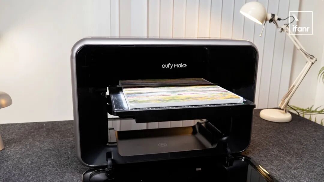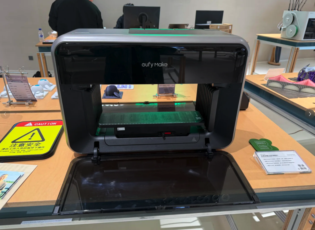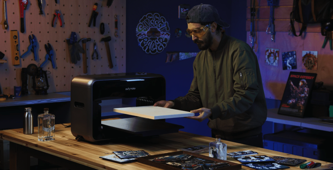 我们为它布置了一个专门的工作间UV 专用墨水本来就不是便宜路线,安克这台机器目前的墨水成本依然偏高,一套 999 元。偶尔打印、做做小样,压力还不至于太大;但只要进入高频使用场景,这笔持续支出很快就会变得有压力,如果没有合适的销售渠道将其变现,覆盖其使用成本,在墨水用完之后,多少会有些后劲不足。很多消费级设备刚买回来时看着都挺香,真正决定你会不会继续用下去的,反而是后面的耗材成本。最后一个问题,是它没有看上去那么地「零门槛」——这台机器当然比传统工业级 UV 设备友好得多,但友好不等于谁都能开箱就玩明白。虽然安克已经大幅度降低了上手门槛,并提供了 15000+ 的免费商用素材并内置了 AI 工作流,但你依旧需要花些时间去研究一下材料、参数、表面适配、文件处理、纹理生成等等的基础知识。对喜欢折腾的人来说,这反而可能是乐趣的一部分;但如果你期待的是一台像家用喷墨打印机那样几乎不用学习的产品,那你大概率会在前期有一点落差。我会觉得,它最可贵的地方不是「已经完美」,而是它把一类原本离普通用户很远的设备,第一次做出了消费电子的样子。它在尽力降低门槛,体积更友好,维护更自动化,连纹理打印这种原本很专业的事情,也试图通过云端服务改造成普通用户能接触的能力。但另一面,它依然不是一台毫无条件的全民设备。空间、通风、耗材成本、曲面限制、学习成本,这些问题没有因为机身变小就自动消失。一类是小型工作室、手作品牌、定制业务从业者,他们有明确的打印需求,也愿意为效率和效果承担一定成本;另一类是重度创客玩家,对材料和工艺本身就有兴趣,愿意花时间摸索机器边界。过去两年,AI 把「从想法到图像」的成本压缩到近乎为零。用豆包、Midjourney 或 Nano Banana,把一个模糊的概念变成画面,只要五分钟。画面创造出来了,然后呢?一张 AI 生成的图片,留在相册里,发个朋友圈,然后消失在信息流中。「从图像到实物」这一步,几乎没被加速过。你依然要手工做,或发淘宝等一周,或找印刷厂排队,从创意到落地之间,还有着巨大的断层。 你依然要手工做,或发淘宝等一周,或找印刷厂排队,从创意到落地之间,还有着巨大的断层。 这种断层正在催生一种新的经济。AI 工具以指数级速度生产素材,图片、设计、概念、风格,这些素材是数字化的、零边际成本的、可无限复制的。但当一个人把它们变成一个实体的、独一无二的物件时,价值就在那一刻产生了。一张 AI 插画是免费的;但印在手工切割的亚克力立牌上,带浮雕纹理,全世界只有这一个时,它就有了价值。 这种经济天然是私人化、个性化的。不依赖工厂的规模效应,不需要最小起订量,不需要开模费。它依赖的是一个人的审美、一个人的想法、以及一套把数字素材变成实物的工具链。AI 负责从想法到图像,3D 打印机负责形状和结构,UV 打印机负责色彩、纹理和多材质附着。AI 更有意义的方向,可能不是把真实搬进虚拟,而是反过来——把那些数码的、转瞬即逝的东西变成实体。互联网上以后会有大量的信息垃圾,反而真实的、实体的东西,才更有价值。西安一个做高端木制拼接玩具的工作室,老板以前打样从深圳发西安,来回就得一周,而现在,小产品已经可以在家里自己迭代。深圳 inno 100 的门店内,有一个 UV 打印制品的定制服务,单件最高能拍出一千多的高价。inno 100 门店内的 eufyMake E1. 图片来自:小红书@庸常 我们还了解到,很多谷子设计师,不愿把文件发给代工厂,就怕盗版,他们需要一台能让生产留在自己手里的设备,而一台家里的 UV 打印机恰好能满足需求。「创造力时代」塑造了无数的超级个体,属于他们的经济模式,当然也是以「个体」为单位。 eufyMake 团队告诉爱范儿,SMB 客户(Small and Medium Business)是他们最重要的客群,其中个人或小型工作室的占比不在少数。去年 ,eufyMake E1 在 Kickstarter 开启众筹,最终筹得超 4600 万美元,破了平台历史纪录。打印速度更快、幅面更大、墨水更便宜,是用户最集中的三个诉求,也是 eufyMake 是未来几代产品必须回答的。 不过,有些事情发生了就回不去。 当一个人第一次用 AI 生成一张图,又第一次在自己桌上把它变成了一个实物。这种「我居然能做到这件事」的感觉,体验过一次就会上瘾。这会驱动他买第二台设备、学第三种工具、做第四件卖得出去的东西。 第一次打印出浮雕头像后,办公室的所有人都发出了惊叹 二十年来,UV 打印技术等的不是更好的喷头或更便宜的墨水,它等的是这样一个时刻——足够多的人有了足够多的创意素材,却找不到一个足够简单的方式,把它们从屏幕里拿出来。现在,这个出口打开了,创造力时代,又多了一台创造力机器。