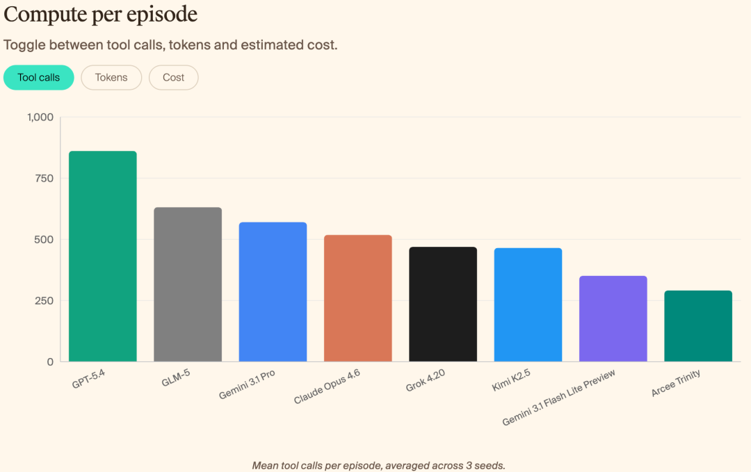 更惨的是 xAI Grok 4.20 和 Arcee Trinity,平均回报率都是 -100%,最终本金归零。Moonshot 的 Kimi K2.5 平均只剩 7420 英镑,Google Gemini Flash 3.1 LP 和 GLM-5 也都出现了单轮「清仓」级别的失败。一个颇有戏剧性的细节是,个别模型偶尔能猜中几场、短暂盈利,但一拉长到整个赛季,就迅速暴露出在持续适应、风控和应对混沌信息上的短板。项目的测试规则是,给 AI 提供详细的历史数据和球队统计,让它们随着赛季推进自行更新模型、动态预测,但不允许联网查询实时结果。计算对比,GPT-5.4 用了最多次工具调用,token 和花费都是它最多,图片来源:https://www.gr.inc/releases/introducing-kellybench
