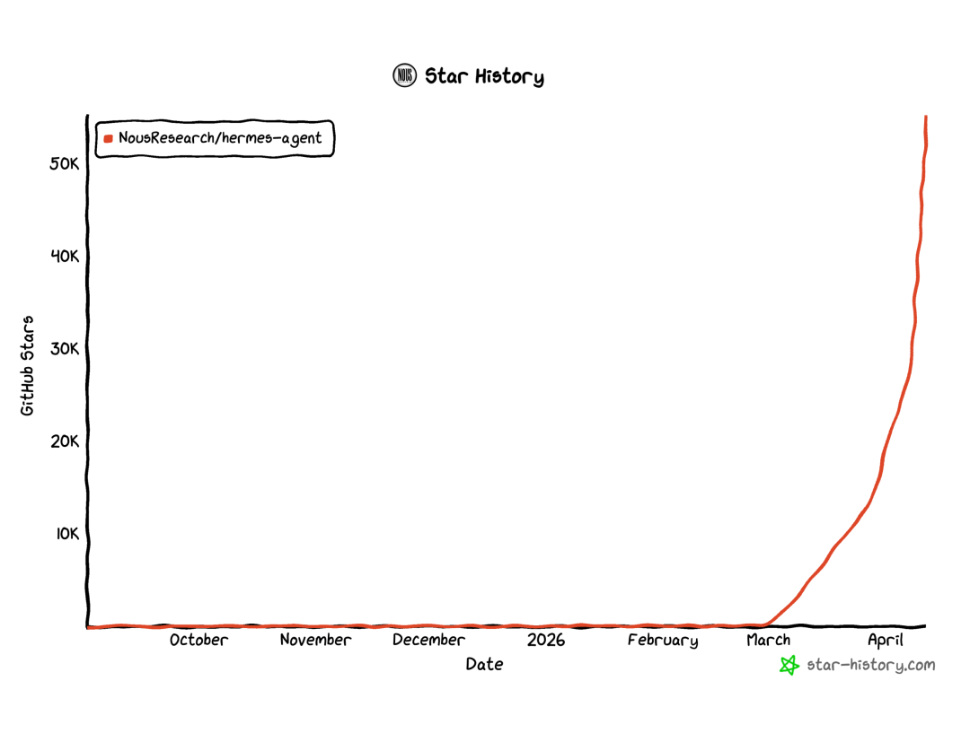 而最近 Windows 的更新,正计划从截图工具、照片、小组件和记事本等应用下手,减少系统里四处可见的 Copilot 入口点。🔗 https://claude.com/claude-for-word🐎 OpenClaw平替Hermes爆了,飙到5万星,还支持微信Nous Research 开源的 Hermes Agent 最近在 X 和 GitHub 上迅速走红。这个项目自 2026 年 2 月发布后,首月拿下超过 2.2 万个 GitHub Star,4 月 8 日发布 v0.8.0 后单日又新增 6400 多星,目前总星标已突破 5 万,一度连续多日登顶全球开源榜。Hermes 的核心卖点很直接:它不是一次性执行任务的 Agent,而是一个会在使用中「越用越懂你」的个人 AI 系统。Hermes Agent 采用 MIT 许可,支持 5 美元 VPS、Docker、Serverless 等 6 种部署方式,可兼容 200 多个大模型,并接入 Telegram、Discord、Slack 等平台。和传统 Agent 最大的不同在于,它把「学习闭环」做成了底层能力:一边保存跨会话记忆,一边从已完成任务中自动抽象出可复用的 Skill,甚至还能导出工具调用轨迹,为后续模型微调提供训练数据。