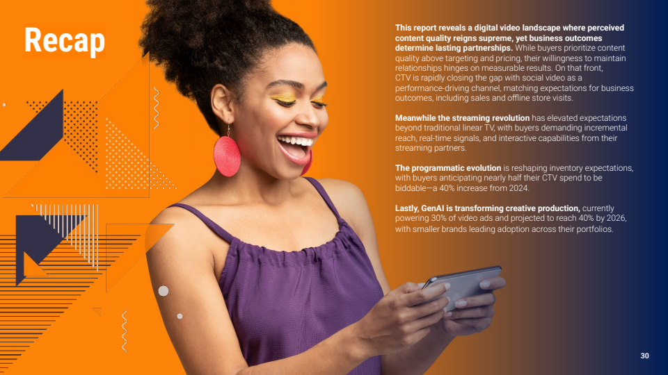 整体来看,数字视频广告正在完成从渠道扩张向价值重构的转型。CTV与社交视频在效果能力上的差距持续收敛,程序化与AI推动效率边界不断提升,行业竞争焦点从流量获取转向数据能力与结果交付。未来,谁能够在内容质量、技术能力与可验证效果之间建立闭环,谁就将在这一高速增长但日益理性的市场中占据主导地位。