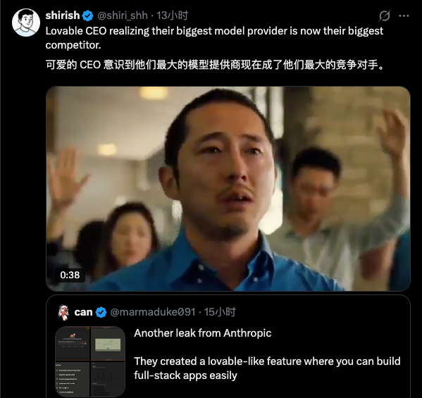 Claude 如今成了新时代的苹果了,到处是路透。苹果被泄露样机,Claude 就被泄漏产品更新。昨晚,一个 X 上的泄露账号曝光了 Claude Code 即将上线的更新:截图验证、安全扫描、设计探索、暗黑模式、登录系统、跨多个代码仓库的统一工作界面。网友们的评价是:「这可能是 Lovable 的全栈竞争对手」,危险危险危险。「模型即应用」这句话像狼来了一样,被反复提起。但在 Anthropic 这里,每一次都比上一次更靠近现实一点。Anthropic 的生意本质上是卖 API,用户调用 Claude 的模型,按 token 付费,这是算力批发。不过这几年,token 价格一直在跌,而且市场竞争不减,罗福莉之前就出来呼吁模型厂商不要搞价格战。纯卖 API 是价格战,没有尽头。但如果把同样的算力包装成 Claude Code 订阅、Cowork 企业版、Managed Agents,那卖的就不是 token 了,而是「解决方案」。同样的底层算力,假设批发价可能是$0.001/1K token,但包装成月费$100 的开发工具,利润率可能高 10 倍。而且产品用户的迁移成本远高于 API 客户。API 客户今天用 Claude,明天就可以切到 GPT 或 Gemini,几行代码的事。但如果你的整个开发工作流建立在 Claude Code 上,你的项目、你的习惯、你的团队协作都在里面,换一个平台的成本就大得多了。简单说,卖 API 是卖水。做产品是修管道。管道比水值钱,那就多修管道。这是 Anthropic 过去半年做的每一个产品决策的大致逻辑。从 Claude Code 由终端工具变成全栈开发环境;Advisor tool 把 API 层的模型路由产品化,锁在 Claude 生态里。Managed Agents 让你不用自己搭基础设施,直接在 Anthropic 的平台上跑 agent……每一步都在从「基础设施提供商」走向「AI 应用生态平台」。早早推出 GPT Store 的 OpenAI,只能咬着牙掐自己大腿。多修管道,多卖管道,看上去合理,但也有不对劲的地方。收集 Claude Code 正在对标的那些公司——Lovable、Bolt、Cursor——都是 Claude API 的付费大客户。它们的产品底层跑的就是 Claude 的模型。Cursor 是一个典型案例。2024 年底,它是 vibe coding 领域的现象级产品,被称为「程序员的新 IDE」。一年以来,Cursor 的风头明显消退。一部分原因是竞争加剧,从 OpenAI 的 Codex,到如今程序员的新宠 Claude Code、OpenClaw、Hermes,它已经不再是网红了。Cursor 的深层的危机其实从来都存在:当产品的核心能力来自供应商的模型,而供应商自己也在做同样的事,护城河就很薄。还有一个例子是 Figma,曾经它上市的时候可谓是风头无两,但股价后继疲软,市场担忧 AI 会侵蚀设计工具的护城河。当 AI 模型可以直接生成 UI、写代码、做原型的时候,一个「设计工具」的价值在哪里?这个问题对 Figma 成立,对 Cursor 成立,对每一个建立在 AI 模型 API 之上的应用层公司都成立。它们都要面对一个问题:Anthropic 自己下场,做了跟客户一样的东西,怎么办?Apple 控制了硬件(iPhone),然后用硬件的控制权向上吃软件。Apple Music 压缩了 Spotify 的利润空间,Apple Maps 对标 Google Maps,Apple One 把一堆服务打包成订阅。Apple 的优势不是「做得更好」,而是「预装+默认」。你的 iPhone 里自带 Apple Music,反之 Spotify 需要主动下载。预装就是有先发优势的,Apple One 是进一步强化和放大这份优势。相比之下,Spotify 在 iOS 上每笔交易要交 30%的「苹果税」,又当裁判又当运动员,就是这么霸道。Claude Code 的逻辑一模一样。它的优势不是比 Cursor 做得更好,而是它就是模型本身。你直接在 Claude 里写代码,不需要中间层,Cursor 反而成了多余的中间人。反正它也只是把 Claude 的能力包装成了一个产品,但现在 Claude 自己就能做到。Anthropic 提供 API 给 Cursor,同时自己做 Claude Code 与 Cursor 竞争。只不过它们的「苹果税」不是 30%的佣金,而是模型能力本身的不对称,当模型更新时,Claude Code 总是第一时间获得新能力,第三方应用永远慢一拍。AWS 当年先提供云基础设施,等生态里长出了各种工具和服务,然后自己做了数据库、消息队列、监控工具,把生态里的公司一个个挤压。Google 做了 Chrome 之后慢慢拿走了浏览器插件的很多功能。Microsoft 把 Teams 捆绑在 Office 里,直接压制了 Slack 的增长。每一次,平台层的逻辑都一样:先开放生态让别人来玩,等市场验证了哪些方向有价值,然后自己下场收割。应用层公司起到一个免费市场调研的作用。这样看 Anthropic 这些做法就完全不新鲜了,看着 Cursor 用 Claude 的 API 做 vibe coding 火了,看着 Lovable 用 Claude 的 API 做无代码开发火了,然后把这些功能还愿到自己的产品里即可。用户有了更丰富的功能,投资人有了更漂亮的业务范围。而且注意这个速度差别。AWS 花了几年才开始挤压生态,而 Anthropic 从 Claude Code 发布到开始做 fullstack 开发环境,只用不到了一年。AI 行业的时钟转得更快,应用层公司的窗口期也短得多。Adobe 就是反其道而行之的。它的路径是从应用层往下吃基础设施,先有 Photoshop 和 Premiere,然后做了 Creative Cloud 订阅,最近又用 Firefly 把 AI 嵌入所有工具。Adobe 证明了一件事:如果你的应用层足够强,你可以自己做模型,而不是等着模型公司来吞掉你。但问题是:做模型的门槛远高于做应用。Cursor、Lovable、Bolt 都没有自己的基础模型,它们的能力完全依赖于模型厂商。这跟 Spotify 的处境不同,Spotify 有自己的版权库和内容策展能力,它对 Apple 的依赖是分发渠道而不是核心能力。但对于一个建立在 Claude API 之上的 vibe coding 工具来说,模型就是核