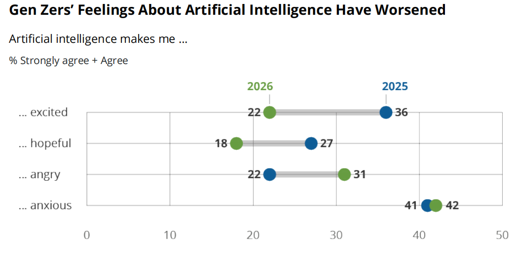 Gallup 的研究最后提到了一句话,大意是 Z 世代并没有在拒绝 AI,他们只是在重新评估 AI 在自己生活中的角色。
