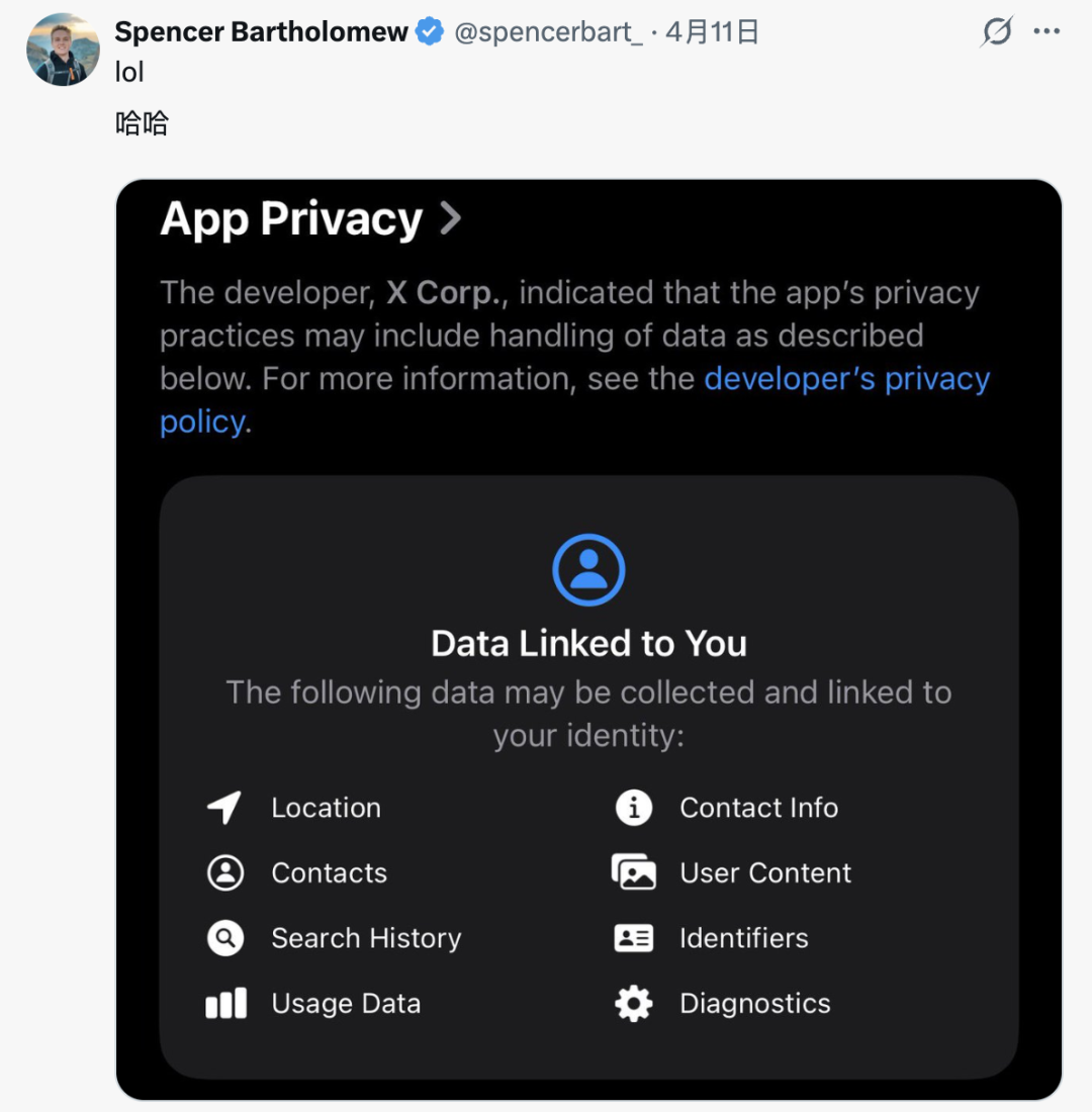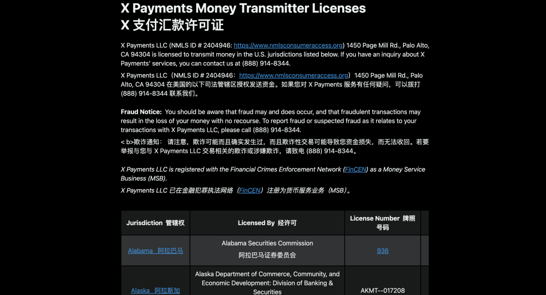 更致命的一点在于,XChat 的协议缺乏「前向保密性(Forward Secrecy)」。这意味着,如果某一天你的静态密钥被攻破,无论是设备被盗、密钥被收缴,还是服务器端组装解密,你过去所有的聊天记录都会在瞬间全部可读。Signal 的「Double Ratchet」算法可以确保即使一次通讯密钥泄露,历史记录依然安全。XChat 没有这个机制。此外,通过查询苹果 App Store 官方披露的隐私标签,网友发现 XChat 保留了收集并与用户身份关联的数据权利,涵盖联系人信息、通讯内容、使用数据、诊断数据以及用户 ID。与此对照的是,Signal 仅收集注册必需的极少量联系人信息,且从不与个体身份关联。更深的问题在于元数据。XChat 可能加密了你发送的文字和图片本身,但 X 平台在后台完整记录的是:你在和谁聊、聊的频率、最活跃的时间段、传输文件的大小。在当代数据经济里,元数据的商业价值往往高于内容本身。这些行为轨迹可以反哺 X 主站的广告引擎,也是训练 Grok AI 的绝佳语料。简言之,聊天内容加密、行为数据裸奔,成了 XChat 最大的隐私悖论。理解 XChat 的野心,得先理解马斯克真正想做什么。他如此大费周章,想要的绝对不是一个仅仅用来聊天的工具,而是一个让用户把日常生活都装进去的「超级应用」,既是你和朋友说话的地方,也是你转账、买东西的地方。按照这个逻辑,XChat 只是第一步。它要和即将上线的 X Money 支付系统深度绑定,让用户在发消息的同时就能完成跨国汇款和日常转账,把「社交+支付」的商业闭环彻底打通。美国没有统一的联邦金融汇款牌照,必须在五十个州逐一申请。截至 2026 年初,X Payments LLC 已拿下超 40 个州及华盛顿特区的许可,但北美金融的心脏纽约州,依然对马斯克紧闭大门。🔗 https://money-support.x.com/en/licenses美国纽约州参议员 Brad Hoylman-Sigal 和众议员 Micah Lasher 曾联名向纽约金融服务局递交公开信,措辞严厉,要求拒绝向 X 发放牌照,理由是马斯克「行为严重缺乏品格与一般适合性」。对于一个志在全美乃至全球的支付网络来说,丢掉纽约州,XChat 内的支付网络就无法覆盖全美最有消费力的人群,更何况,西方用户本就对「把所有鸡蛋放进一个篮子」这件事天然抵触,支付功能再打折扣,这个故事就更难讲下去了。种种受挫的现实固然让人对「超级应用」的说辞产生怀疑,但只要看透他底层的逻辑,眼下的一切就变得合理起来。抛开那些关于阅后即焚、加密隐私的极客噱头,目前关于 XChat 最具想象力的传闻,是它将如何与自家的 AI 大模型 Grok 融合。