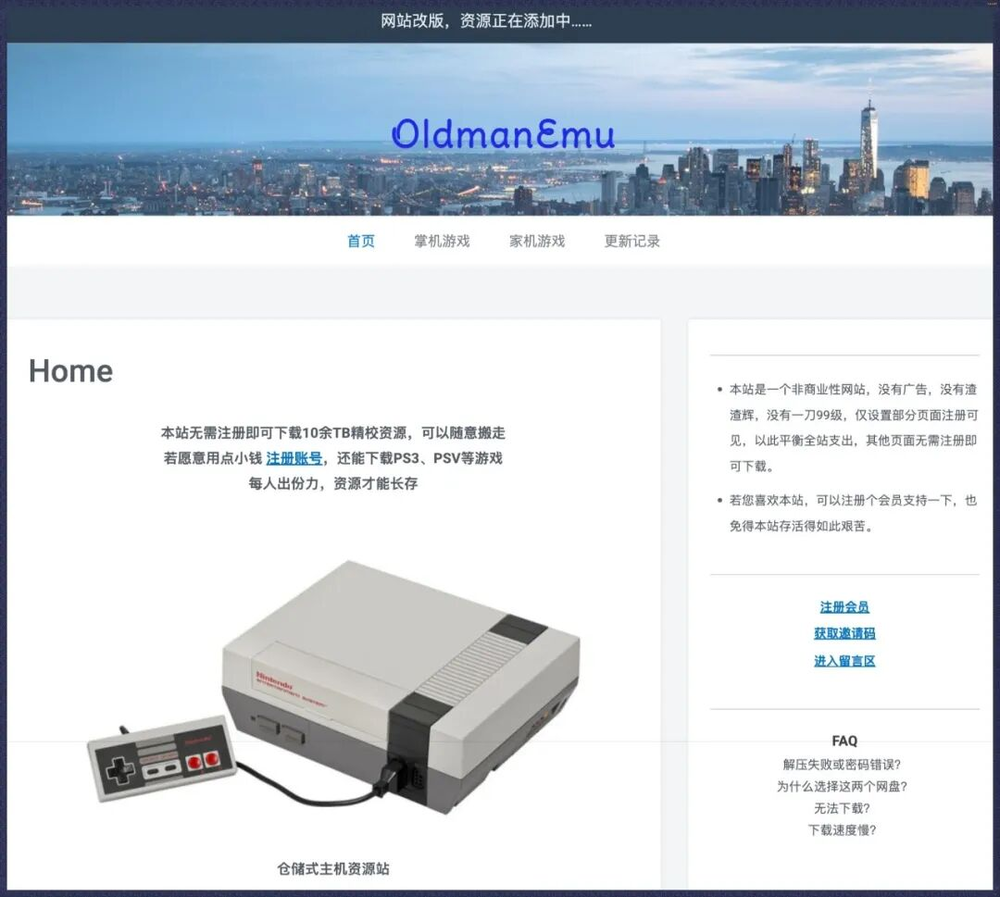 几乎同一时期,国内(大概是)最大的模拟器复古游戏资源站——老男人游戏网(OldmanEmu)在3月20日突然发布紧急公告,临时关闭了网站和论坛。