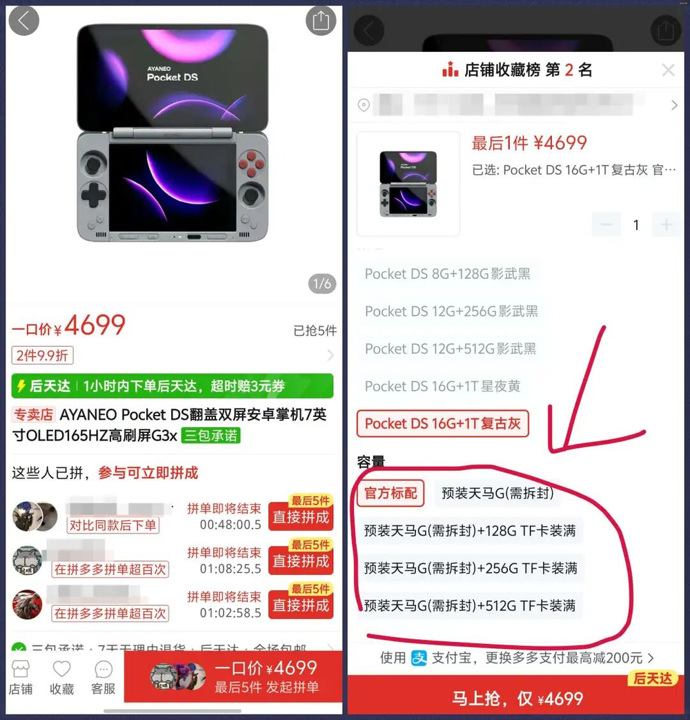 比如在买安卓掌机的时候,商店页面经常会看到一个“预装天马G前端+TF卡装满游戏”的加价选项。我个人不建议花这笔冤枉钱,因为它本身是完全免费的。