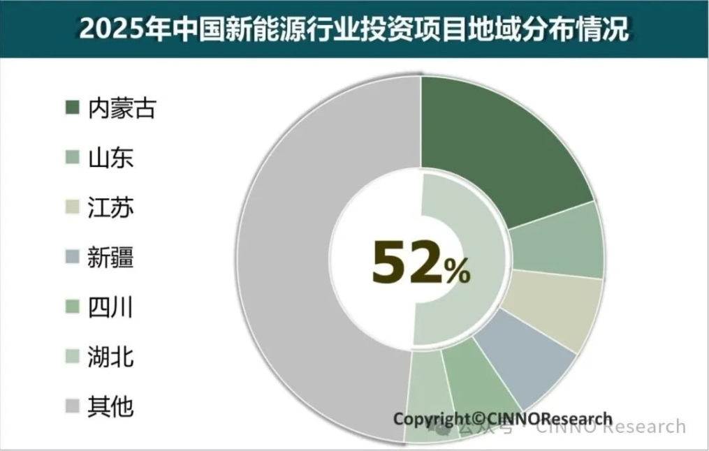 图示: 2025年中国新能源产业投资项目地域分布情况,来源: CINNO Research