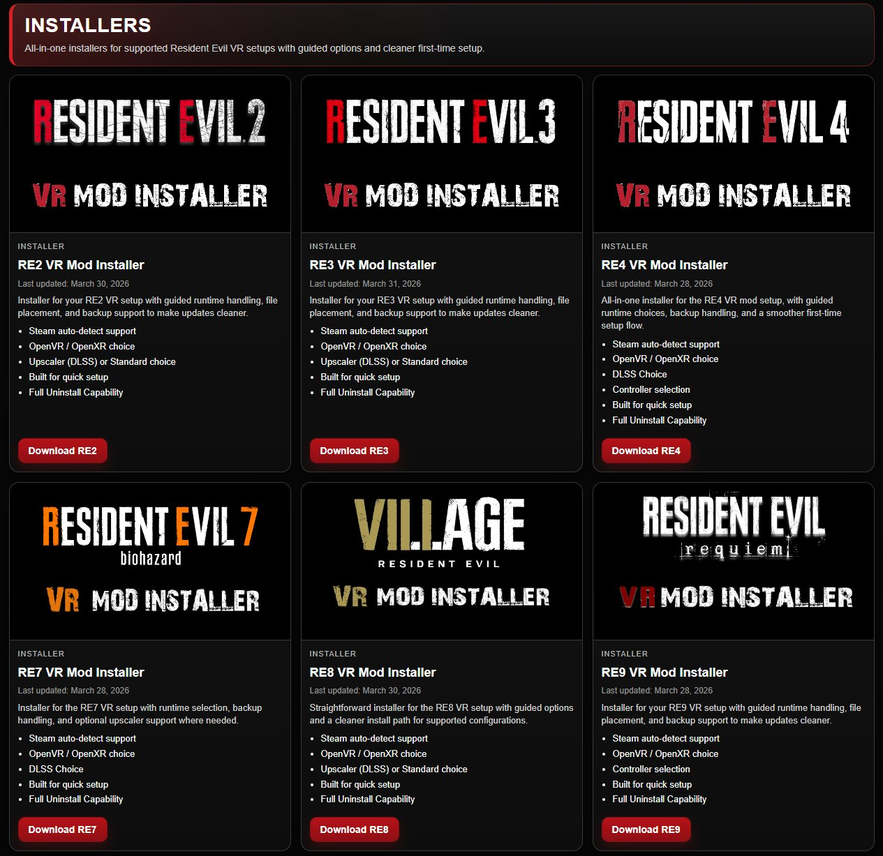 玩家能够通过这个VR Mod安装工具以6DoF动作控制在VR中玩Steam上的《生化危机》系列游戏,包括《生化危机2》、《生化危机3》、《生化危机4》、《生化危机7》、《生化危机:村庄 》或《生化危机9》。