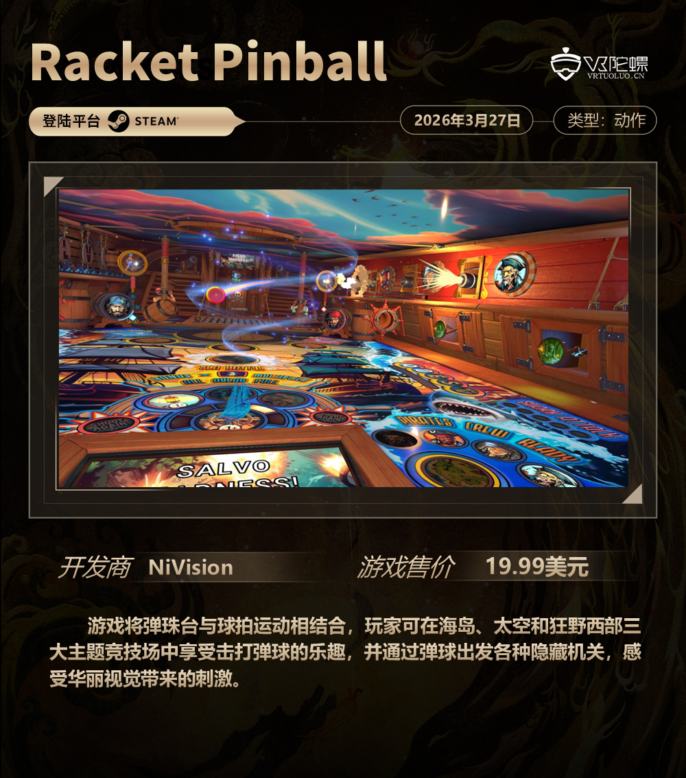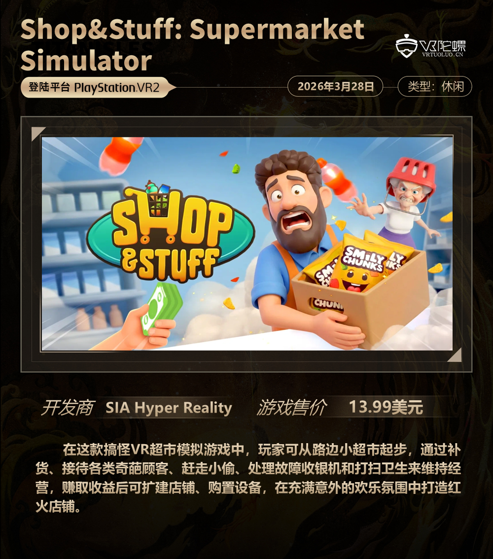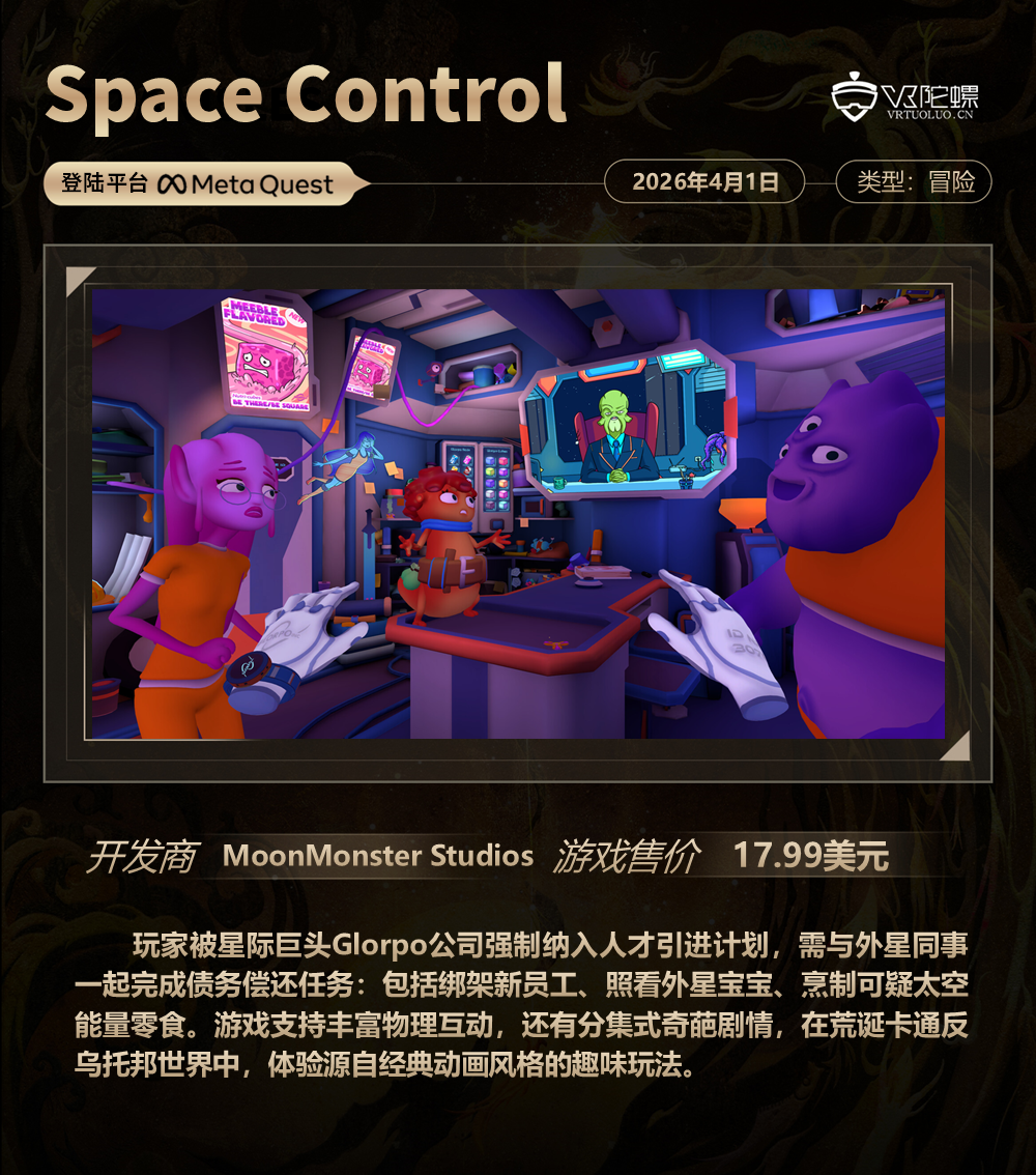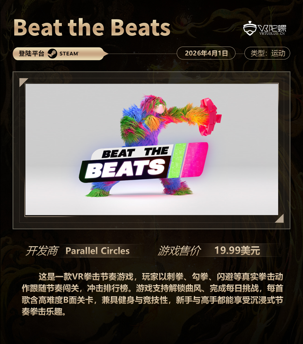 VR游戏周报·第186期,统计3月27日~4月3日期间上线的VR游戏,新作介绍共计6款,后文按照发售时间排序。截至2026年4月3日,各主要VR平台的内容数量如下: