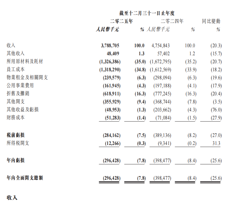 不过,去年亏损有所收窄,从2024年的3.98亿元降至2.96亿元,同比收窄25.6%。