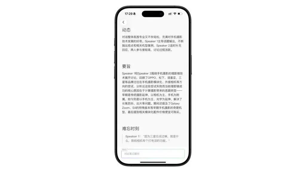 但 Plaud 只是围绕「人」听到的话进行构建,聚焦在人和人之间的交互,首先是 100% 记录,然后再通过摘要、模板,保留和树立其中最有价值 50% 内容,并将 10% 的精华呈现出来。