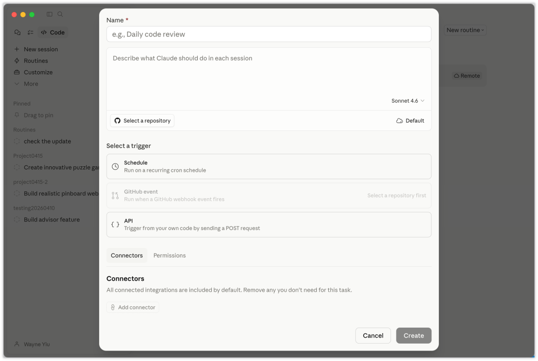 生产队的驴都没有 Anthropic 这么忙,从今年年初 Claude Cowork 发布之后, Anthropic 的更新就没有停止过,说一天一项都不为过。根据 the information 的报道,Anthropic 在本周甚至会推出 Opus 4.7,和前几天社交媒体上爆料,类似 Lovable 的 AI 设计工具。与此同时,Anthropic 在帮助中心更新的一则内容,引发了更大的争议。官方正在为 Claude 的「部分使用场景」引入身份验证,例如在触及到某些能力、平台例行完整性检查、安全与合规要求时,用户会被要求验证身份,此举被很多网友推测是针对中国用户的「实名制」。https://support.claude.com/en/articles/14328960-identity-verification-on-claudeAnthropic 给出的核心理由很直接,强大技术要负责任地使用,平台需要知道「谁在使用」。目前,已经有网友发现,在 Claude 内尝试订阅 Max(即最高档会员计划)时,会被触发身份验证。能不能继续用成了个问题,但 Anthropic 这边的发货是马不停蹄。今天凌晨,Anthropic 再对桌面版的 Claude Code 进行了重新设计。Claude Code 支持一个窗口内并行运行多个 Claude 会话,同时还新增了侧边栏管理会话、集成终端、文件编辑、HTML / PDF 预览、更快的 diff 查看器、拖拽式布局等多项新功能。除了软件交互层面的更新,Anthropic 还给 Claude Code 加了一个很关键的新能力,「Routines」。顾名思义,它是把这些可重复执行的日常任务,完全自动化,支持定时和触发运行。同时,这些任务可以跑在 Anthropic 的 Web 基础设施上,不依赖于本地 Mac 在线。定时任务在 OpenClaw 出来之后并不算新鲜,无论是使用已有的工具配置 Cron Job,还是通过编写 HEARTBEAT.md 文档来告诉 Agent 需要以什么周期来跑什么任务。Claude Code 这次更新的 Routine 功能,一方面是接管了这些重复性的任务,另一方面它既可以本地也可以远程,能做到不依赖我们的电脑在线,运行在 Anthropic 托管的云基础设施上,笔记本合上也能继续跑。本质上,Routine 是一个保存在云端的 Claude Code 配置包,里面包括提示词、代码仓库、连接器和运行环境。Routine 触发方式有三种,三种触发方式分别瞄准三种不同场景。定时触发:按小时、每天、工作日、每周,或者用 cron 自定义API 触发:外部系统发一个 HTTP POST 就能拉起任务GitHub 触发:PR、push、issue、workflow run 等事件发生时自动执行定时触发最直觉,每天晚上跑一次日志整理,给新 issue 贴标签、分配负责人,早上团队上班时收到一份整理好的摘要。这些任务的共同点是:重复,规律,不需要人实时参与判断。Claude Code 在网页端也能使用 RoutineAPI 触发针对的是已有工具链的接入场景。例如监控系统发现错误率异常,触发 Routine,Claude 自动拉取内容跟踪,并给出修复建议。GitHub 事件触发则把 Routine 直接嵌进代码协作流程。Routine 能按照项目配置,自动对代码进行审查,以及决定是否要合并仓库等。一个 Routine 可以叠加多种触发方式。比如同一个任务,既能定时每天夜里跑,也能在有事件触发时跑,还能被部署脚本手动触发。这些场景的共同特征都是人工也可以做,但是做起来很枯燥又容易忘记。Routine 的重点就是把这些「无人值守、可重复、有明确结果」的工作流完全自动化。Routine 主要是配合 GitHub 使用,官方给出的典型场景都是集中在项目开发上。例如代码审查、项目部署验证、文档修复等软件开发常见的流程。这也符合 Anthropic 一路以来在 B 端,在 AI Coding 方向上的发力。目前 Routines 只对 Pro、Max、Team 和 Enterprise 用户开放,而且每天有次数限制。Pro 用户每天最多运行 5 个 routines,Max 用户 15 个,Team 和 Enterprise 用户是 25 个。同一天发布的还有 Claude Code 桌面端的大改版。右下角的 Claude Code 像素吉祥物,点击它,还会有鞭子抽打的效果新版桌面端将顶部的 Chat、Cowork,和 Code 分类栏移动到左边的侧边栏顶部。增加的多对话并排,也是通过左侧边栏管理,现在我们可以在一个窗口里同时跑多个 Claude Code 对话,以拖拽的形式就能分屏显示或置顶不同对话。我们也在 Claude Code 桌面端体验了一波这次的更新。和之前的 Claude Code 终端处理多个会话不同,我们不再需要维持多个终端窗口。现在的 Claude Code 同样如此,一个人就能同时监督多条不同的任务线。在电脑上是应用可以这样分屏拖拽,在应用内是文件,在 Claude Code,是每一个运行的 Agent此外,Claude Code 还内置了终端、文件编辑、HTML 和 PDF 预览,原先需要用浏览器打开,或者编辑器处理,这些反复切换的场景,现在在同一个窗口就能完成。如果你是开发者,想要查看每次更新后 Claude 动了哪些地方,现在也提供了像 Git 一样的 diff 视图,开发者可以快速看到不同版本之间的区别。以前是在 Cursor、终端里面用 Claude 模型,现在 Claude Code 直接把这些常见的代码编辑器会有的功能,统统搬上来。这次桌面端改版的方向,很明显是要把 Claude Code 从一个单一的工具,变成一整套全面的工作台。把两个更新放在一起看,Routines 解决了「我不在时谁来做」,桌面端升级解决了「我们在时怎么同时做多件事」。这两项更新既让 Claude Code 有了在后台独立运行的能力,也让用户在前台的操作密度和体验更强了。Claude Code 桌面端负责人 Anthony Morris 也发推文说,他自己连续好几周没有用过终端、代码编辑器、集成开发环境这类产品了。现在的 Claude App,已经完全从一个聊天的对话工具,进化到了真正接管任务的调度和执行本身。Karpathy 此前发文表示传统的编