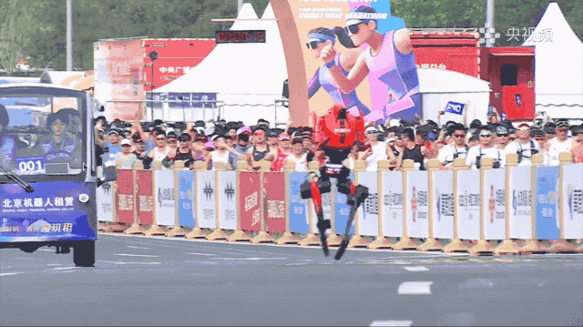 就在刚刚,2026 北京亦庄人形机器人半程马拉松鸣枪开跑。冠亚军成绩仅差 30 秒,前三名全部跑进 53 分钟,大幅刷新去年冠军 2 小时 40 分的成绩,也全面刷新了人类半马世界纪录。300 余台机器人,26 个主流品牌,13 个省市区的选手加上德法巴西的海外实验室,以极其赛博的姿态在 21.0975 公里的赛道上集体竞速。本以为是一场硬核技术大考,结果直播打开 5 分钟,就无缝切换到了看综艺的心态。带大家康康今天赛道上最值得被截图保存的名场面。现场观众看得津津有味,连人类跑手都在起跑区主动为机器人加油,画面莫名带感。先出场的几乎都是被寄予厚望的种子选手,来自北京荣耀的绝影赤兔队率先发枪,出战机型是今年热度极高的「闪电」。按照今年的赛事规则,参赛机器人分为自主导航和遥控操作两种模式,遥控组的成绩要乘以 1.2 的加权系数,再叠加比赛过程中的各类罚时,第一个冲线的机器人未必就是最终冠军。起跑采用流水线式单发出场,每 30 秒放行一台。行进过程中机器人全程靠右,左侧留给超越与避障的专用通道,跟随车必须与机器人保持至少 20 米的安全距离。机器人风驰电掣地跑, 前面出发的机器人的瞬时速度几乎都保持在 6m/s 到 8m/s。开跑没多久,后面出发的机器人就完成了对前面队伍的反超,仔细看,一些机器人背后都绑了降温用的冰袋。然后是今天的第一个名场面,一台机器人跑着跑着突然刹停,看起来想上车了。也有一台机器人跑偏了赛道,直接贴上路边围栏,完成了堪称影帝级的碰瓷表演。机器人在奔跑途中对前方障碍物相当敏感,稍有不对就会急刹摔倒。所以组委会要求机器人间隔出发,本身就是为了避免这种连环追尾。机器人不吃能量胶,但赛道中途设有能量补给站,用来换电和应急处置。有的机器人在补给的过程掉装备了,完全没察觉。速度不够,造型来凑。再加上被风一吹就飘起来的发丝,人形机器人今天的 OOTD 有了。由于赛道环境相较去年更复杂。赛程全长 21.0975 公里,首次引入南海子公园生态路段,赛道融合平地、坡道、弯道、狭窄路段等 10 余种地形,12 个左转道、10个右转道,包含接近 90° 的弯道,十分考验机器人的路径规划与动态平衡能力。赛道上另一个名场面,真人跑者和机器人并肩竞速,结果机器人一个加速直接超过了人类选手。画面定格的那一刻,堪比一幅世界名画。中后段起跑的人形机器人基本都是另一种画风,慢悠悠地晃着,像喝了假酒,主打一个健康完赛就好。最揪心的一幕出现在冲线前,一路保持节奏的机器人,眼看终点近在咫尺,突然扑通一下栽倒在地。紧急抢救上线,担架小哥都已经冲进赛道了,在工程师的帮助下,它自己又颤颤巍巍地爬起来完成了撞线。于是,第一只冲线的机器人出现了。由于是间隔出发,前面的机器人已经跑完,后面的队伍还没发车。中段出现了一台小鼻嘎机器人,手里还拿着奶瓶,主打一个萌系赛道。话说身高这么矮的机器人,到了终点真能够得到撞线的那根线吗。天气越跑越热,补给站除了换电之外,顺带还承担了物理降温的任务。然后是顶流出场,来自大湾区的鸡型机器人也下场营业。哟嚯,跑着跑着还有主动停下来饭撒的,姿势相当到位,怀疑是触发了对人类友善协议。还有机器人跑到一半突然停止摆臂,单臂凌空,一副杨过独战天下的武侠范。一台机器人冲过终点之后,可能是过于兴奋,一鼓作气冲进了旁边的绿化带,最后被救护人员抬了出来。也有选手在终点前来了一段百米冲刺的蛇形走位,经典场面之王不见王。完赛之后也有温情时刻,辛苦了那么久,工程师和自家机器人美美合照。金属机甲风的设计基调,通体锻造质感,线条硬朗,结构错落。更有巧思的是中间那块可展开结构,拉开之后整块奖牌直接化身一台立体的小人形机器人。本次比赛开始前,网友问得最多的问题是:为什么机器人一定要长得像人呢?其实人形机器人之所以执着于双足直立,是因为人类社会的一切基础设施都是按「人」这个形态设计的。一台人形机器人如果真要走进工厂、走进家庭,适配物理世界的人形结构其实更合适。道理虽然懂了,但看完今天的赛道,我有一个大胆的想法,为了让机器人跑得更快,为什么不直接给他换上两个轮子呢?那如果再进一步,四个轮子加上流线型车身,速度绝对再上一个台阶。你看,它已经变成了一辆车。所以还是算了,两条腿的路,得自己走。今天赛道上那些摔跤、碰瓷、一头冲进绿化带的钢铁身影,是人形机器人最笨拙的样子,也可能是它们最后一批还会出洋相的岁月。至于人形机器人跑步等竞赛到底有没有意义,我们电影其实早就给出了答案:机器人会跑步,没用。机器人会功夫,或许也用处不大。但当一台会功夫的人形机器人以 8m/s 的速度跑过来找你切磋的时候,就很有用了。✉️ 邮件标题「姓名+岗位名称」(请随简历附上项目/作品或相关链接)