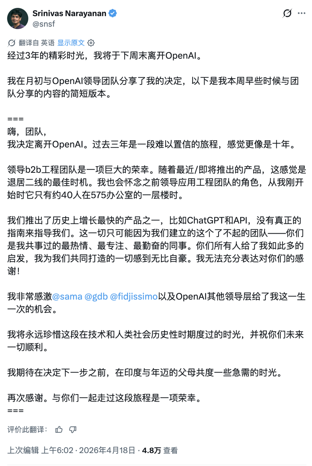 两名核心高管同日离职!OpenAI 前景愈发扑朔迷离