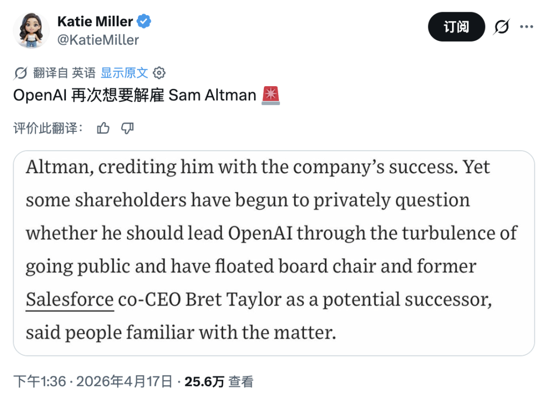 美国时间周五,OpenAI 两名高管在同一天离职:Sora 负责人、世界模型技术专家 Bill Peebles,以及 OpenAI for Science 负责人、前首席产品官 Kevin Weil。Peebles 发帖:从零开始打造出 Sora,是自己一生的荣誉。Weil 也发帖:今天是我在 OpenAI 的最后一天,为整个团队加油!两个高管,同一天出走。而这背后,是一场 OpenAI 正在经历的深层震荡,一张越拉越大的利益罗生门,和一个越来越难坐稳的 CEO 位置。MIT 本科,UC 伯克利博士,师从计算机视觉大佬 Alyosha Efros,读书期间拿过美国国家科学基金会奖学金。加入 OpenAI 之前,他在英伟达、Adobe Research 和 Meta FAIR 都实习过。但真正让他在圈内声名大噪的,是一篇世界模型技术领域的关键底层架构论文。2022 年 12 月,Peebles 和纽约大学谢赛宁合作,发表了这篇论文,提出了后来被称为 DiT 的架构,用 Transformer 替换了扩散模型中常见的 U-Net 主干,证明了这一路线在图像生成任务上的可扩展性,并入选 ICCV 2023 口头报告。后来 OpenAI 在 Sora 的技术说明中明确表示,Sora 采用的正是 DiT 架构。因此 DiT 通常被视为这一路线的重要先导工作。带着这套积累,Peebles 加入 OpenAI 开始搞 Sora。大概在 Sora 启动一个月左右,那时候整个项目还只是两个人在鼓捣。他们输入了一个奇怪的提示词,生成了一段视频:一条陆地鲨鱼,游过一片布满仙人掌的沙漠。鲨鱼游过去之后,每一棵仙人掌的细节,分毫不差。「我们从来没有在任何视频模型里见过这种物体持久性。就是那一刻,我们知道,我们抓住了什么。」Peebles 在帖子里写道,OpenAI 对这类「疯狂登月项目」有很高的容忍度,但即便如此,2023 年 7 月时,内部仍然有大量质疑声:在当时整个行业的视频生成水平下,一年内做到高保真 1080p 多镜头生成,真的可能吗?2024 年 2 月后,他们交出了答案:震惊业界的 Sora。他说,Sora 点燃了整个行业对视频生成的大规模投入,但真正让公众意识到这场变化的,是后来的 Sora 2。他也因此感谢 OpenAI 高管给了他们一个空间去追逐「偏离主干道的想法」,「Sora 是一个只有在 OpenAI 才能发生的项目」。OpenAI CEO Sam Altman(山姆·奥特曼)在评论区秒回:真的会很想念你,Bill,你的创造力让全世界以新的方式体验了 AI 视频,期待看你接下来做什么。Peebles 回了一个爱心:谢谢你给的一切,Sam。但把时间线往前拉一个月,画风就没那么温馨了。就在 Peebles 离职前一个月,OpenAI 宣布关停 Sora 独立应用。官方给出的理由是,找不到可持续的商业模式。Sora 2 发布后 5 天内下载量破百万,但之后热度急速下降。奥特曼自己后来也承认,大量用户主要用 Sora 制作趣味表情包分享给好友。这种一次性的娱乐行为,天然缺乏复购动力,也几乎没有变现路径。而正如 Peebles 在推文里所说:「Overton 窗口的移动速度令人惊叹。」意思是,窗口移动之后,用户的期待值跟着水涨船高。Sora开创了这个时代,但新的标准一旦建立,Sora 自己也要面对更高的门槛。同日离职的,还有经常在 OpenAI 发布会上出现的熟面孔 Kevin Weil 。这位曾在 Instagram 担任早期高管的大佬,2024 年 6 月加入 OpenAI,挂上了首席产品官的头衔。然后去年 9 月,他主动从 CPO 位置退下来,转身去搞了一个新项目:OpenAI for Science。目标宏大,要给科学家专门打造一套 AI 工作台。核心产品叫 Prism,今年 1 月正式上线了网页版。团队大约 10 人。然后,今天,Kevin Weil 发帖:OpenAI for Science 正在被分散到其他研究团队,今天是我的最后一天。据连线杂志报道,Prism 团队并入了 Codex,也就是 OpenAI 的 AI 编程产品,由 Codex 负责人 Thibault Sottiaux 接管。Prism 的能力,将被打包进 Codex 桌面客户端。与此同时,OpenAI 还有另一个内部动作,悄悄同步发生:企业应用 CTO Srinivas Narayanan 将于下周末离职,理由是回家陪家人。Narayanan 此前是 OpenAI 工程 VP。毫无疑问,为了应对越来越近的 IPO 和竞争对手的商业化压力,OpenAI 正在无情地砍掉那些曾经引以为傲的「疯狂登月项目」。Peebles 的离去、Weil 的出局,以及各种独立应用的关停,都是这场业务大收缩下的必然牺牲品。砍掉支线任务之后,OpenAI 目前的核心焦点已经收窄到两块:企业客户和编程。而这背后有一个明确的压力来源:Anthropic。上个月,OpenAI 产品负责人 Fidji Simo 对全员喊话,说 Anthropic 的成功应该成为 OpenAI 的「警醒」,要把更多资源押注在面向专业工作的产品上。Simo 同时也宣布,OpenAI 要把包括 Prism 和浏览器 Atlas 在内的多个应用,整合进一个「超级应用」。只是,这样的做法真的能立竿见影吗?高管的离开只是开胃菜,《华尔街日报》最近发了一篇深度报道,标题非常赤裸地点名奥特曼的「副业」正在模糊 OpenAI 的利益与他个人利益之间的边界。先说 Helion。这是一家核聚变公司,声称自己的技术接近实现廉价、充裕的能源供给。Altman 从 2014 年就是股东,2021 年往里砸了 3.75 亿美元,那是他当时做过的最大一笔单笔投资,大量身家押在里面。微软当年也签了协议,承诺从 2028 年开始向 Helion 购买电力。问题是,Helion 此前承诺第七代机器 Polaris 会在 2024 年实现发电量超过消耗量,然后,deadline 到了,Helion 悄悄宣布没达到,也没说下一个节点是什么。很快,Helion 开始缺钱。然后奥特曼去找软银了。彼时软银正在跟 OpenAI 谈一笔 400 亿美元的大单,Altman 在这个档口,找到孙正义,希望软银参与 Helion 的融资。最终这笔 Helion 投资,由孙正义亲自拍板,完全绕过了软银内部的正常投