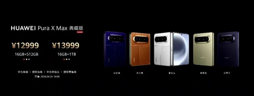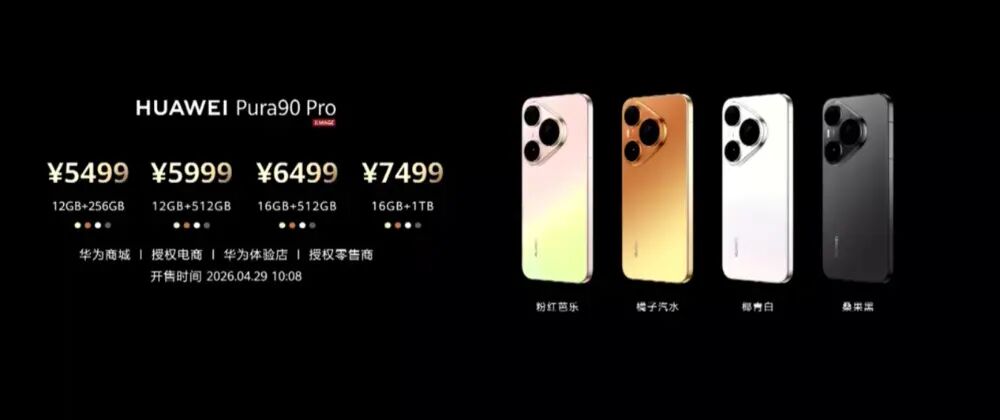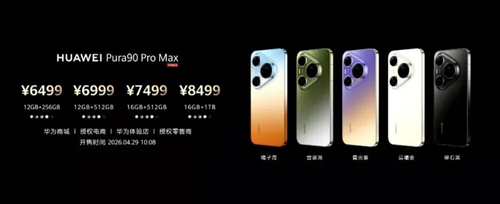 今天下午,华为Pura系列及全场景新品发布会正式到来,多款新品亮相发布。华为Pura90 Pro Max汲取假日旅行灵感,带来橘子海、翡翠湖、霞光紫、晨曦金、曜石黑五款配色。华为Pura90 Pro 带来粉红芭乐、橘子汽水、椰青白、桑果黑四款配色。华为Pura90 提供罗兰紫、丝绒黑、雪域白等配色。华为Pura 90 Pro Max长度164 mm、宽度77.1 mm、厚度8.1 mm,重量约 230.5g。华为Pura 90 Pro长度157.8 mm、宽度74.5 mm、厚度8.2 mm,重量约 213.5g。华为Pura 90长度163.1 mm、宽度78.1 mm、厚度7.0 mm,重量约 210g。全系支持IP68 级 2 米抗水,IP69 级抗高温高压喷水。华为Pura 90 Pro Max配备6.9 英寸屏幕,FHD+ 2880 × 1308像素,覆盖抗反光耐刮昆仑玻璃。华为Pura 90 Pro配备6.6 英寸屏幕,FHD+ 2760 × 1256 像素,覆盖第二代昆仑玻璃。华为Pura 90配备6.8 英寸屏幕,FHD+ 2856 × 1320 像素,覆盖昆仑玻璃。华为Pura 90 Pro Max搭载麒麟9030S芯片,内置6000mAh电池,支持最大100W超级快充,支持 80W 华为无线超级快充,支持无线反向充电。华为Pura 90 Pro搭载麒麟9030S,内置6000mAh电池,支持最大66W超级快充 ,支持 50 W 华为无线超级快充,支持无线反向充电。华为Pura 90搭载麒麟9010S,内置6500mAh电池,支持最大100W超级快充,支持 50W 华为无线超级快充,支持无线反向充电。影像方面,华为Pura 90 Pro Max前置1300 万像素超广角摄像头。后置5000 万像素超高动态摄像头,OIS 光学防抖;4000 万像素超广角摄像头;超大底 2 亿长焦摄像头,OIS 光学防抖,长焦微距;第二代红枫原色摄像头。华为Pura 90 Pro前置1300 万像素超广角摄像头。后置5000 万像素超聚光摄像头,OIS 光学防抖;1250 万像素超广角摄像头;5000 万像素超聚光微距长焦摄像头,OIS 光学防抖;第二代红枫原色摄像头。华为Pura 90前置5000 万像素超聚光人像摄像头,红枫原色摄像头。后置5000 万像素超聚光摄像头,OIS 光学防抖;1250 万像素超广角摄像头;5000 万像素超聚光潜望长焦摄像头,OIS 光学防抖;红枫原色摄像头。华为 Pura 90,12GB + 256GB 售价 4699 元、12GB + 512GB 售价 5199 元、16GB + 512GB 售价 5699 元。华为Pura 90 Pro,12GB+256GB 售价 5499 元、12GB+512GB 售价 5999 元、16GB+512GB 售价 6499 元、16GB+1TB 售价 7499 元。华为Pura 90 Pro Max,12GB+256GB 售价 6499 元、12GB+512GB 售价 6999 元、16GB+512GB 售价 7499 元、16GB+1TB 售价 8499 元。阔折叠家族新成员,双面阔型屏,提供星际蓝、活力橙、零度白、橄榄金、幻夜黑等可选配色。长度120 mm,折叠状态下宽度85 mm、厚度11.2 mm,展开状态下宽度166.5 mm、厚度5.2 mm,重量约 229g。IP58、IP59防尘抗水。外屏屏幕5.4 英寸,支持 1-120 Hz LTPO 2.0 自适应刷新率,1848 × 1264 像素,1440 Hz 高频 PWM 调光,最高 300 Hz 触控采样率,第二代昆仑玻璃。内屏屏幕7.7 英寸,2584 × 1828 像素,支持 1-120 Hz LTPO 2.0 自适应刷新率,1440 Hz 高频 PWM 调光,最高 240 Hz 触控采样率,可折叠柔性屏幕,UTG。影像部分,外屏前置800 万像素摄像头(F2.4 光圈),内屏前置800 万像素摄像头(F2.2 光圈)。后置5000 万像素超光变摄像头,F1.4-F4.0 十档物理可变光圈,RYYB,OIS 光学防抖;1250 万像素超广角摄像头,F2.2 光圈,RYYB;5000 万像素超大光圈潜望式长焦摄像头,F2.2 光圈,RYYB,OIS 光学防抖;第二代红枫原色摄像头。核心搭载麒麟9030 Pro 芯片,配合 HarmonyOS 6.1,软硬芯云深度协同,整机性能提升30%。配备5300mAh电池,支持最大66W超级快充,支持 50W 华为无线超级快充,支持无线反向充电。华为 Pura X Max,12GB+256GB版本 10999 元、12GB+512GB版本 11999 元。HUAWEI Pura X Max典藏版,16GB+512GB版本 12999 元、16GB+1TB版本 13999 元。除此之外,华为还在今天的发布活动中带来了华为WATCH ULTIMATE DESIGN 非凡大师星钻绽放款、华为Watch FIT 5 Pro、华为WATCH Buds 2、华为AI眼镜、华为MateBook14 鸿蒙版、华为智慧屏S7 Pro等产品。综合来看,华为这次推出的两个系列手机覆盖了不同的使用场景。结合参数和定价,大家感觉如何呢?iPhone18Pro深樱桃色曝光,还有新色测试中!iPhone18Pro不涨价?曝苹果自行承担成本上涨
