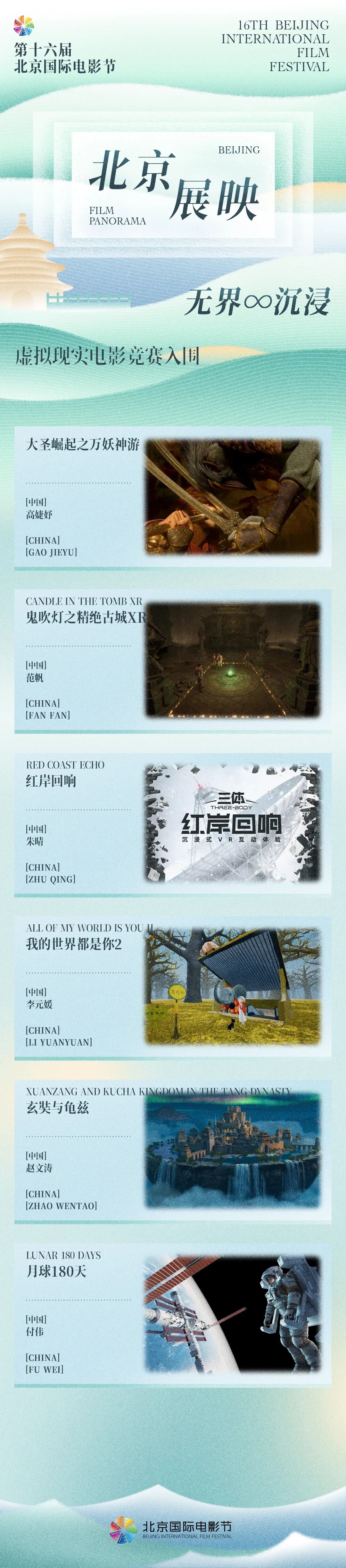 这些作品融合角色扮演、机关解谜、历史思辨、太空互动等形态,展现中国VR电影在艺术与技术上的最新突破,将在北影节期间为观众带来前沿沉浸观影体验。