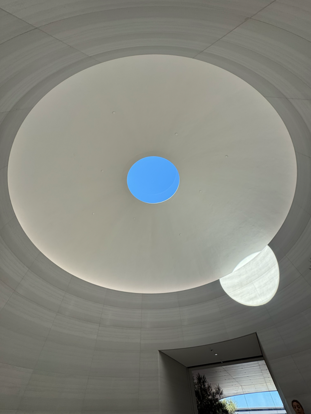 地点是 Apple Park 内一栋新落成的建筑,名叫 Observatory(天文台)。它建在园区的一处小山坡上,地面入口是穹顶造型,走进去,头顶有一个面朝天空的圆形天窗。阳光从正上方直射下来,整个空间有种神庙般的仪式感。