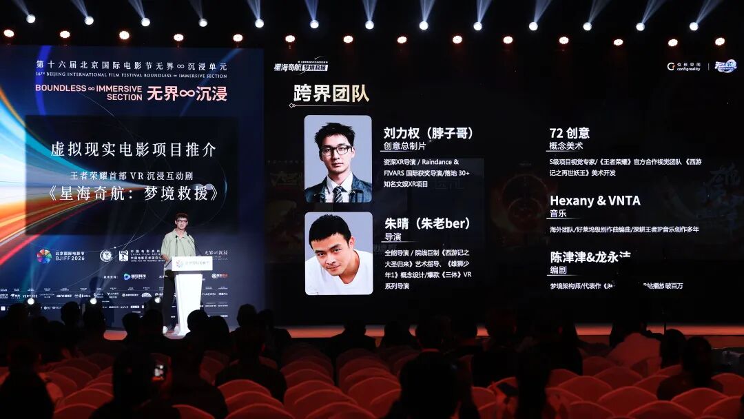 4月18日,2026北京国际电影节“无界∞沉浸单元”启幕,由位形空间出品制作、天工幻境联合出品发行,王者荣耀与上海天文馆联合授权的XR沉浸式互动剧《星海奇航:梦境救援》在现场完成全球首次公开亮相。作品凭借双顶流IP与XR技术的深度融合,以清晰的商业落地路径,成为XR业内关注的焦点。