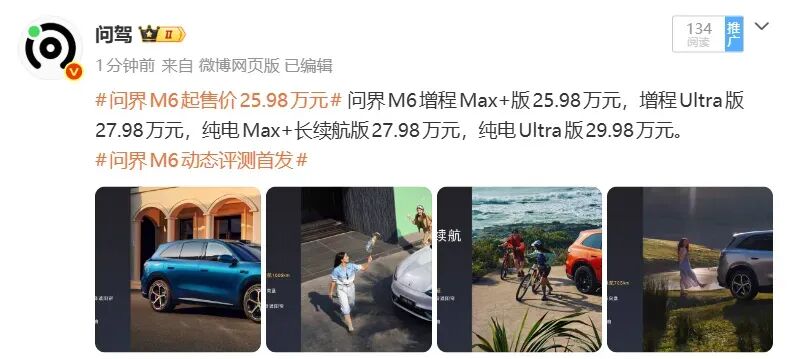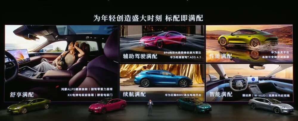 今晚,鸿蒙智行春季新品发布会正式到来,多款新车同台亮相。一起来看看!在今日的发布会上,尚界Z7系列正式上市,其中尚界Z7定价21.98万元起,Z7T定价22.98万元起。据介绍,尚界Z7全系标配5大华为黑科技底座:华为乾崑智驾 ADS 4.1、华为巨鲸 800V 高压电池平台、896线双光路图像级激光雷达、华为鸿蒙座舱、华为途灵平台;全系标配8大科技舒享配置:鸿蒙 ALPS 健康座舱 2.0、随动屏、主副驾零重力座椅、HUD 抬头显示、流媒体内后视镜、静音电吸门、连续可变阻尼减振器、Knock-Knock 电弹电吸前备箱。率先登场的是问界M6,新车定位“新锐智慧 SUV”,标配全球量产最高 896 线激光雷达,售价 25.98 万元起。问界M6提供星夜紫、钛空银、流光青、脉冲蓝、活力橙、曜石黑、暖云白七款新锐外观配色,内饰提供紫慕白、引力红、电光橙三款双拼配色及韶华杏单色内饰。新车采用晶耀钻石切割灯组、轿跑溜背线条,车长4960mm,轴距2950mm,风阻系数仅为0.239cd。拥有1.915m乘坐空间,至高202L容量智能前备箱。问界M6全系搭载鸿蒙ALPS健康座舱,标配随动中控屏,创新副驾“灵感橱窗”支持更换手办、电子墨水屏或香氛模块。前排配备双零重力座椅,后排搭载17.3英寸娱乐屏,创新智控旋钮可按可旋,还有全车10处磁吸点位,支持丰富磁吸配件。底盘方面,新车搭载途灵智能底盘:前双叉臂后五连杆+单腔空气悬架+CDC减震,涉水深度达700mm。问界M6搭载华为巨鲸电池平台,纯电版全系标配100kWh三元锂电池包,云端BMS电池管理系统。纯电版CLTC续航里程至高760km;增程版CLTC综合续航至高1605km,CLTC纯电续航至高355km,百公里油耗低至5.9L。智能化方面,问界M6全系搭载华为新一代896线图像级激光雷达,配合华为ADS 4.1系统及30个感知硬件,可实现超高清、超远距障碍识别。安全性方面,问界M6搭载全维防碰撞4.0,全车16处采用2000MPa热成型钢材料,前备箱、后备箱、智能迎宾踏板、座椅电动调节、随动中控屏、后排娱乐屏均设有感知防夹、硬件防夹、紧急暂停三重冗余防夹机制。除了问界M6,全新一代问界 M9 今晚正式开启预订,新车提供标准尺寸及 Ultimate 领世加长版两款车型,预售价分别为 49.98 万元起、66.98 万元起。据介绍,新车将首发华为乾崑智驾 HUAWEI ADS 5,届时其将拥有迄今最强大的融合感知 + 控制决策系统,独创 6 激光雷达立体矩阵。目前,全新一代问界 M9 系列的外观亮点已曝光,包括全新一代智慧投影大灯、全新一体贯穿灯、全新半隐藏式门把手、全新大饼轮毂 + 悬浮 LOGO 等。作为鸿蒙智行首款旗舰MPV,智界V9从空间、场景、健康、舒适、驾驭、安全等多个维度重新定义MPV。预售价格 39.98 万元起。预订可享 5000 元意向金抵 10000 元尾款。据了解,智界 V9搭载旗舰 9 系华为途灵 MPV 定制平台,全系标配13个安全气囊,全系标配主动后轮转向等旗舰配置,首发搭载全新一代鸿蒙ALPS健康座舱,搭配森林级车载制氧系统;搭载全新“环宇”三联屏、二排超大吸顶屏,二排零重力座椅支持45°~180°调节,可实现手势控制、语音控制。此外,发布会上华为常务董事余承东宣布:华为智能电驱系统叫华为智擎,今天正式发布,号称将重新定义新能源汽车动力系统能效标准。据介绍,华为智擎采用双 94% 碳化硅动力平台,增程发电效率大于 94%,超过 91% 的行业平均;纯电工况效率同样大于 94%,高于 92% 的行业平均。支持自动越野模式,配备自适应牙嵌式差速锁,自适应超低速蠕行低至 0.5km/h,颠簸路况速度波动可减少超 55%。