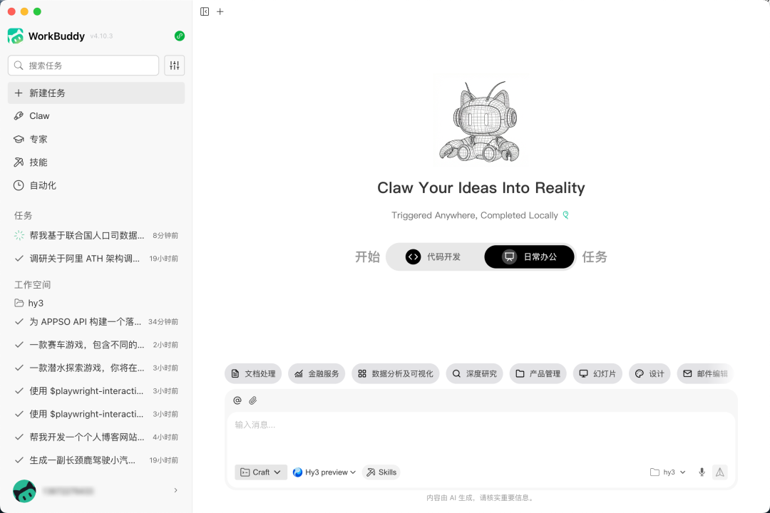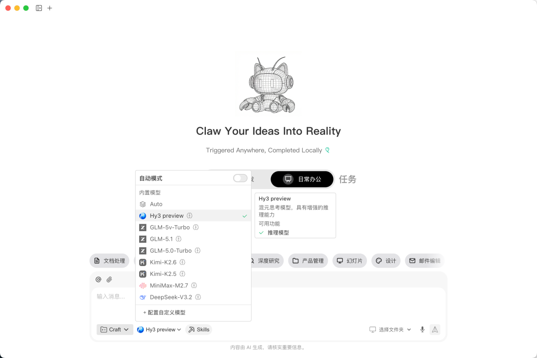 姚顺雨表示,Hy3 preview是混元大模型重建的第一步。他希望通过这次开源和发布,不断提升 Hy3 正式版的实用性,以及模型在真实场景中的综合表现,并开始探索特色模型能力。从去年年底姚顺雨加入腾讯,入职首席 AI 科学家,并负责 AI Infra 及大语言模型,1 月底开始启动模型训练,三个月的时间完成了从训练到上线。这个大版本升级的混元模型,在短时间内,不仅对底层基础设施进行了系统性重建,还包括预训练和强化学习在内的底层框架,全部推倒重来。最后的答卷是一个快慢思考融合的 MoE(混合专家)语言模型,总参数 295B,激活参数 21B,最大支持 256K 上下文长度。在这个行业动辄吹嘘万亿(1T+)参数的时代,Hy3 preview 的数据显得有些克制。但这个参数很明显是兼顾了性能和成本之间的平衡,让模型能更好落地在不同场景。而 300B 这个量级,复杂的数理推理、长上下文理解和指令遵循能力都已经被充分激活;如果继续强行扩大规模到万亿参数,一边是训练时间加倍,在实际的表现上,也容易出现通信延迟、吞吐瓶颈和推理成本翻倍等问题。不过,姚顺雨也提到,他们在继续扩大预训练和强化学习的规模,提升模型的智能上限。在多个真实生产和生活场景 benchmark,以及腾讯混元的 CL-bench 上表现对比前代,提升幅度明显。因此,Hy3 preview 这次的定位非常明确,要到真实世界去解决复杂工程问题。为了验证 Hy3 preview 是否能在真实世界去解决各种问题,具体的模型表现如何,APPSO 也提前拿到了内测资格,在元宝 App 和 WorkBuddy 桌面端应用了实测了一段时间。编程能力目前还是各家大模型发力的重点,前几天还有外媒报道,谷歌正在成立一个新的团队,专攻 AI Coding。这次的腾讯混元新一代大模型 Hy3 preview 同样在通用能力的提升基础上,能够适用于编程和现在热门的智能体场景。在公开的编程和智能体 benchmark 上,Hy3 preview 的表现较 Hy2 提升显著例如我们用之前 GPT 5.4 模型发布时使用的编程测试案例,来看看 Hy3 preview 的具体表现。提示词:创建一个超写实的旧金山金门大桥交互式 3D 体验,允许我自由飞翔环绕。环境需包含真实的照明、水体、雾气、大气效果、悬索、车流、周边海岸线及城市背景,并具备电影级的尺度感和细节。让我能通过直觉式的飞行控制和多视角(包括近距离结构穿梭和大场景俯瞰)平滑地进行场景导航。核心要求是真实感、沉浸感和视觉忠实度。在测试运行时,务必从多个距离和角度环绕大桥飞行,验证导航的平稳性与稳定性,并确保场景无论远近都极具说服力。你可以利用 imagegen 技能生成建模所需的初始资产。视觉效果绝不能有任何“方块感”或“廉价感”,必须达到高保真、极度平滑、近乎照片的质感。桥面上应有真实的车辆通行。不必急于求成,如果需要,即使耗时一小时也可以。请不断迭代,直至完美。虽然最后的结果并不是非常写实,主要差距还是在于所使用的工具限制。但整个体验还是非常流畅和丝滑,我们能使用 WASD 键来控制自己第一人称视角的飞行,同时 Hy3 preview 也自动写了一些默认视角。而在让它写一些简单的小游戏时,像是同样来自 GPT-5.4 的提示词,做一个游乐场的经营类小游戏。提示词:创建一个可以在浏览器中构建并导航的交互式等轴测 (isometric ) 主题公园模拟游戏。利用 imagegen 确立整体视觉风格,并生成全套游戏资产,包括游乐设施、路径、地形、树木、水体、食品摊位、装饰物、建筑、图标以及 UI 插画。游戏世界必须具备高度的统一感、精致度以及丰富的视觉表现,艺术风格需高端且适配等轴测视角。允许平滑地铺设或拆除路径、添加景点、布置景观并环绕公园移动,同时能够监控游客活动、设施状态以及公园的发展情况。系统需包含可信的游客移动算法,以及简单的公园管理系统(如资金、清洁度、排队和满意度)。确保整体体验充满趣味、逻辑清晰且完整,而非粗糙的原型。在优先级上,趣味性、易读性以及出色的游戏手感高于写实度。在进行玩法测试时,务必通过多轮操作来构建并扩张公园。验证设施放置与导航是否顺畅,确认游客对公园布局及景点的反应,并确保视觉效果、UI 以及交互体验稳定且统一。还是不可免俗的使用了「渐变紫」的套装,只能说界面审美这一块,除了编程能力的提升,还是需要额外的一些微调。好在整个游戏是能玩的,我们可以真实的经营这个游乐场,通过铺路、放置新的游乐设施以及服务设施等场地,来赚取收入,控制人流。而经典的「骑自行车的鹈鹕」测试,我们把它换成了更难一点的,开着汽车的长颈鹿。生成的 SVG 画面是动态的,太阳、云朵和车子都在移动,基础的 SVG 元素都能做到。这些关于编程能力的测试,我们都是在腾讯前段时间推出的智能体应用 WorkBuddy 内完成。而除了代码开发的任务,我们还可以使用 WorkBuddy 进行文档处理、数据分析可视化、深度研究等方面的日常办公。由于 WorkBuddy 也是一个本地 Agent 产品,和 Claude Code、Codex 之类的应用一样,我们可以让它直接访问本地文件夹的文件。要求它访问电脑上 Hy3 文件夹里面的全部文件,并根据文件的内容,创建一个类似于 Wiki 的网页,能够直接索引到不同的文件。WorkBuddy 读到了我们创建的不同项目,例如要求它完成的落地页、3D 金门大桥、个人博客、运营游戏等项目,并分类总结好。再要求它把其中一个香港国际电影节的 PDF 文件转成 HT