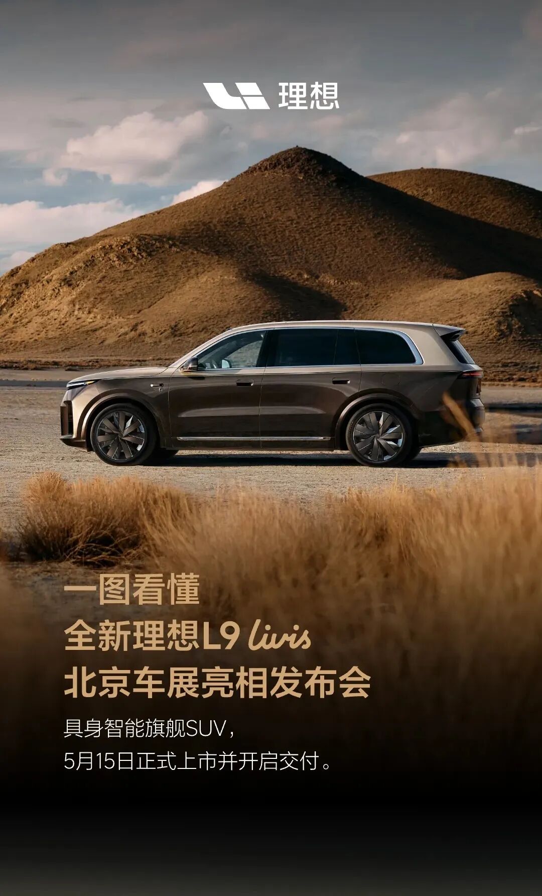 据 Auto 鹏友报道,昨日,腾势汽车「全球首款智能电动超跑」腾势 Z 在北京车展全球首秀。该车由比亚迪全球设计总监沃尔夫冈·艾格领衔打造,以「Pure Emotion」为设计理念,提供硬顶、敞篷和赛道三款版本。性能与配置方面:超过 1000 匹马力,零百加速进入 2 秒以内;搭载易三方整车智能控制平台,支持精准扭矩矢量控制;全新理想 L9 Livis 亮相北京车展,5 月 15 日上市