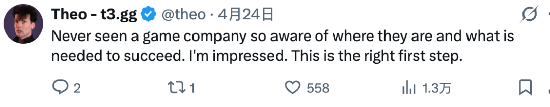 「从没见过一家游戏公司对自己所处的位置和将要做什么如此清晰。这令我印象深刻,你们走在正确的道路上。」