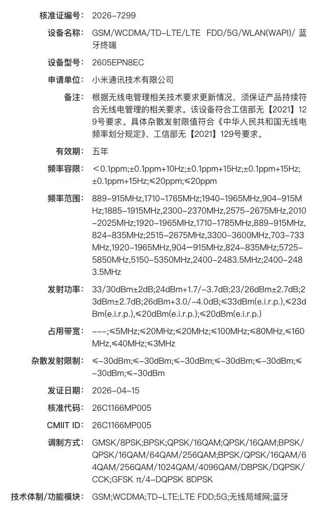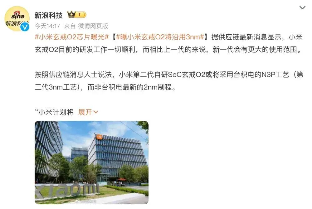 以往的爆料中也提到过“供应链消息显示,小米玄戒O2目前的研发工作一切顺利,而相比上一代的来说,新一代会有更大的使用范围。”按照这份消息中的说法,小米第二代自研SoC采用的或许是台积电的N3P工艺,而不是台积电最新的2nm制程工艺。同时,小米还有望将自研芯片推向更多产品系列,后续的平板、汽车、电脑等产品也有望进行搭载。与此同时,关于有望搭载玄戒芯片的手机产品,最近也有消息提到过。据悉,一款型号为 2605EPN8EC 的小米新机近日通过了认证。认证信息中没有提到详细的产品系列,但推测认为其有可能就是即将发布的小米 17 Max。按照以往的消息来看,这款小米 17 MAX大屏机型暂定5月发布。有望配备6.9 英寸 1.5K 屏幕,极窄四等边纯直屏设计,旗舰同款新基材新技术,还有3D超声波指纹和满级防水。核心预计搭载第五代骁龙 8 至尊版,且不排除提供玄戒版本的可能。内置8000mAh左右的电池,不搭载背屏。还有望配备金属中框,采用简约镜组设计,加强扬声器和X轴马达。后置200Mp 主摄、50Mp 长焦微距镜头组合,定位“全能大屏旗舰”。同时还有消息称,这款新机有可能会被称为小米 17S Pro,实际的命名方案还需要等待后续确认。另外,随着大电池的逐渐普及,小米后续的万级电池新机计划也出现了曝光。最近的一份爆料中显示,子系中端线会率先上10000mAh级超大电池、100W闪充、2亿大底主摄、金属中框、光学指纹、1.5K LTPS高刷大屏、天玑中端芯片。结合推测来看,指的应该是小米旗下产品,预计为REDMI机型。iPhone18Pro机模曝光,库克反思其15年CEO任期5299 OPPO Find X9s Pro详细体验 影像双旗舰发布!4699华为Pura90、X Max发布 真机开箱来了!