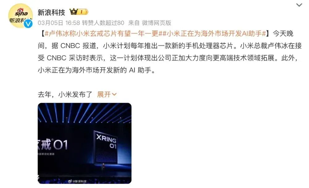 不久前,小米推出了旗下全新的REDMI K90 Max手机。现在随着时间的推进,关于小米后续更多新品也出现了相关的曝光。最近的一份消息显示,一款型号为2608BPX34C的小米旗下折叠屏手机现身了代码库,代号为“lhasa”。相关推测认为其有可能是小米 MIX Fold 5,但也有爆料称其或被命名为小米 17 Fold。按照这份爆料中的说法,这款全新的小米折叠屏手机将搭载“玄戒 O3”芯片。因此也有消息称小米有可能跳过“玄戒 O2”命名。而关于小米自研芯片以往也出现过不少爆料。参考新浪科技上个月的爆料来看,小米计划每年推出一款新的手机处理器芯片。小米总裁卢伟冰在接受采访时表示,这一计划体现出公司正加大力度向更高端技术领域拓展。按照这份报道中的说法,每年更新 SoC 是一项巨大工程,这一节奏与苹果类似。苹果通常每年都会推出新的 A 系列处理器。卢伟冰表示,这款芯片将首先搭载在今年在国内发布的一款新机上,之后也会应用到小米面向海外市场销售的手机中。