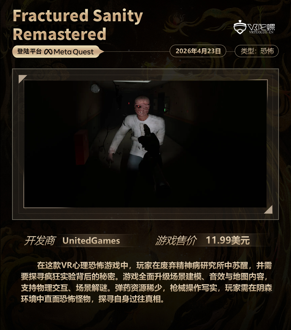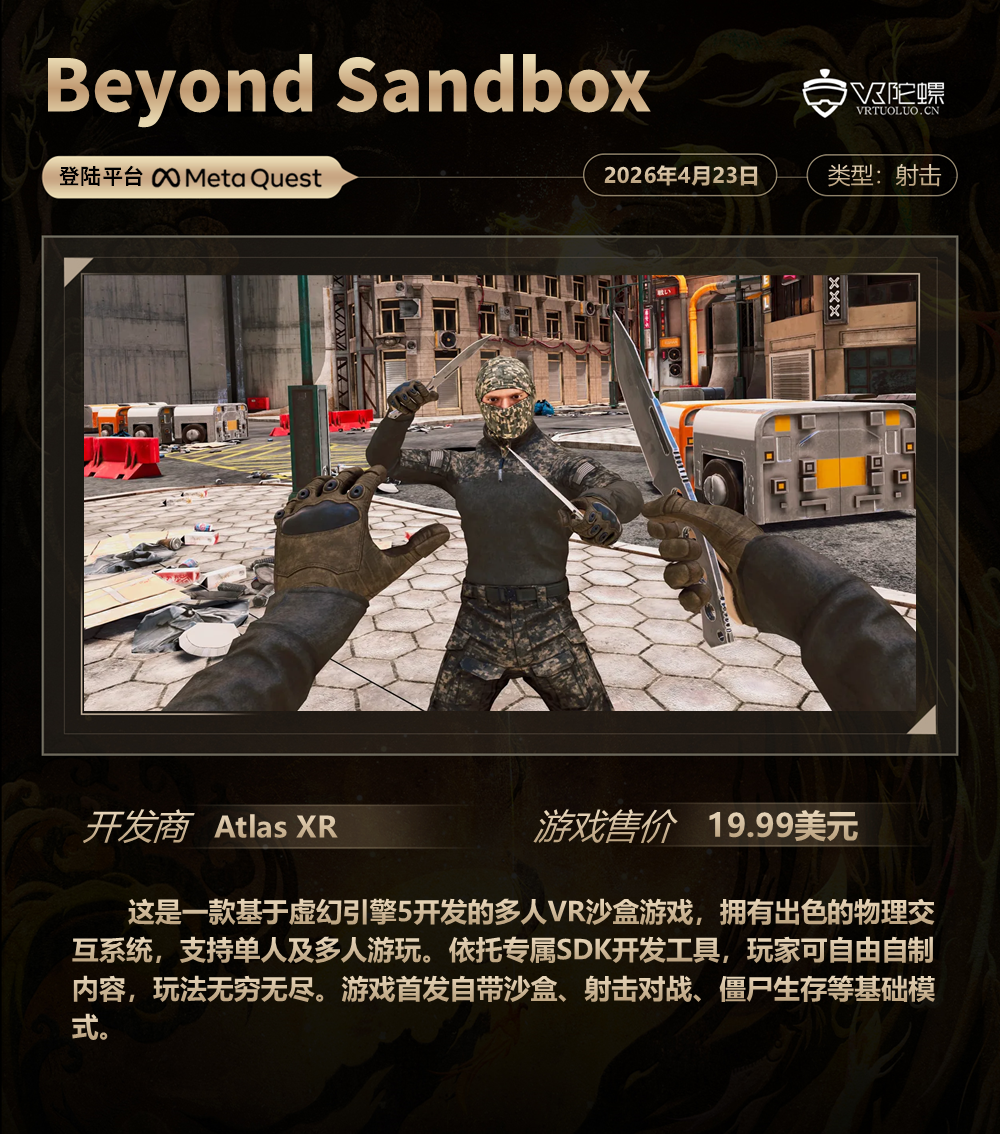 新作方面,2025年上线的恐怖游戏《玩具熊的五夜惊魂:模仿者的秘密》将新增VR游玩支持,并于4月28日登陆PS VR2与SteamVR平台。另一款VR FPS游戏《Forefront》已于4月23日上线正式版,在这款紧张刺激游戏中,玩家将进入支持32人的大规模战场中,用战略、技巧和团队协作决定战局胜负,体验沉浸式的战术对抗。