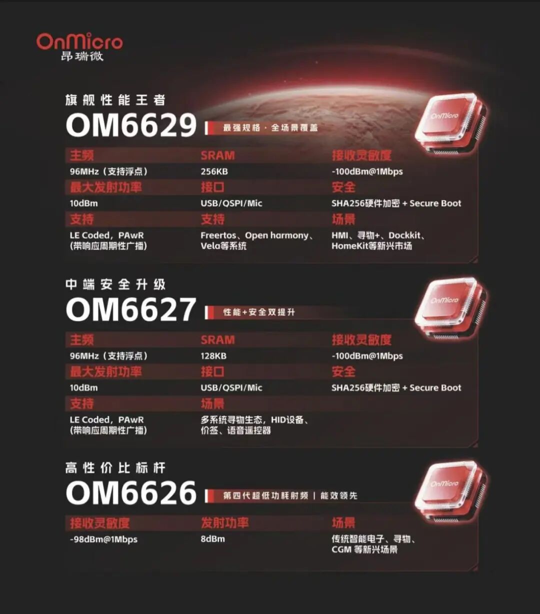 在“寻物+”生态推动下,OM6626因为性价比最高,资源适中,目前在Tag类产品中出货量最大。而OM6627和OM6629拥有更大的Flash和RAM,可以支持带显示的设备,比如电子墨水屏、LCD屏,或者需要充电管理和人机交互的耳机仓、充电宝。肖金红判断,随着更多带交互功能的寻物设备上市,这两款芯片的出货量将会很快起来。
