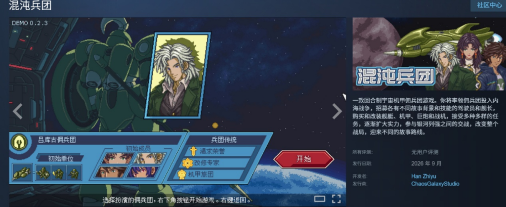 以“混沌银河”系列为例,这个系列有一批非常忠实的海外玩家,他们喜欢的是类《超级机器人大战》的回合制战斗玩法,独特世界观下的剧情,太空机甲要素。韩之昱正在开发的新作《混沌兵团》,却没有再做大战略,而是在保留回合制战斗的基础上,强化了资源管理做半开放的线性关卡。但新作仍然置于“混沌银河”的世界观中,虽然和前作玩法不同,大部分设定和美术都和前作一致。