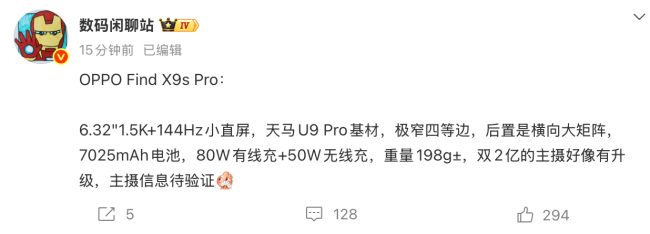 今日,一款名为OPPO Find X9s Pro的新机核心配置信息被公开。该机型聚焦于小尺寸屏幕与高性能的平衡,再度强化了“小屏高能”这一产品定位。其配备一块6.32英寸1.5K分辨率、144Hz刷新率的直面屏,采用天马U9 Pro显示基材,四边等宽设计带来极窄视觉边框,整体观感简洁协调。这一尺寸选择,意在兼顾单手操作的舒适性与旗舰级性能体验,回应特定用户群体对便携性与实力兼得的切实需求。整机重量