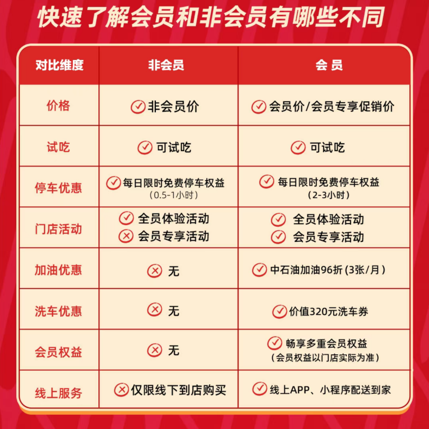本文来自微信公众号: 壹览商业 ,作者:蒙嘉怡,编辑:杨宇本土会员店品牌经历了一轮快速扩张后,正集体进入调整阶段。3月25日,M会员商店在公众号发文,正式宣布全员开放,非会员也可以进M会员商店购物,只不过会员权益有所区别。比如,在价格上,持卡用户继续享受专属会员价,并可使用线上下单、配送到家等服务,享受加油、洗车优惠;非会员则按非会员价结算,且无法享受其他服务。壹览商业发现,早在2025年12月,
